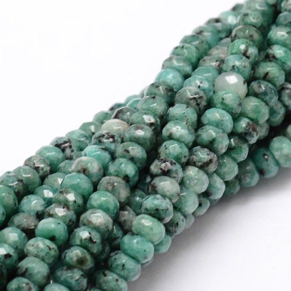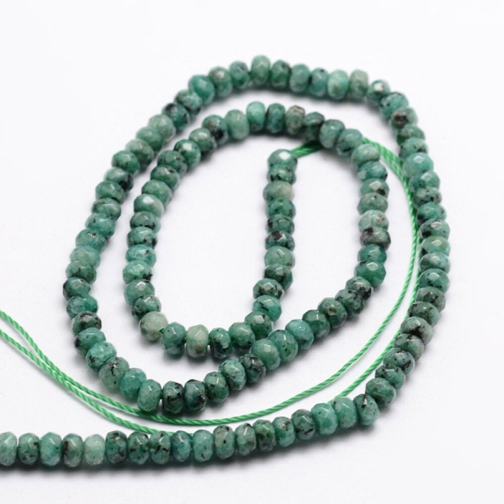 Un fil d'environ 100 perles facettées en jade teint naturel