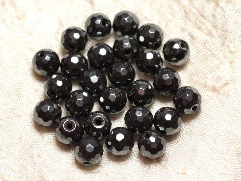 10pc - Perles Pierre Hématite Boules Facettées 8mm Métal noir gris argenté