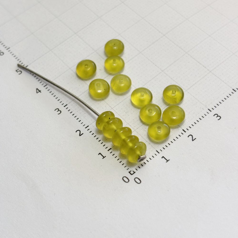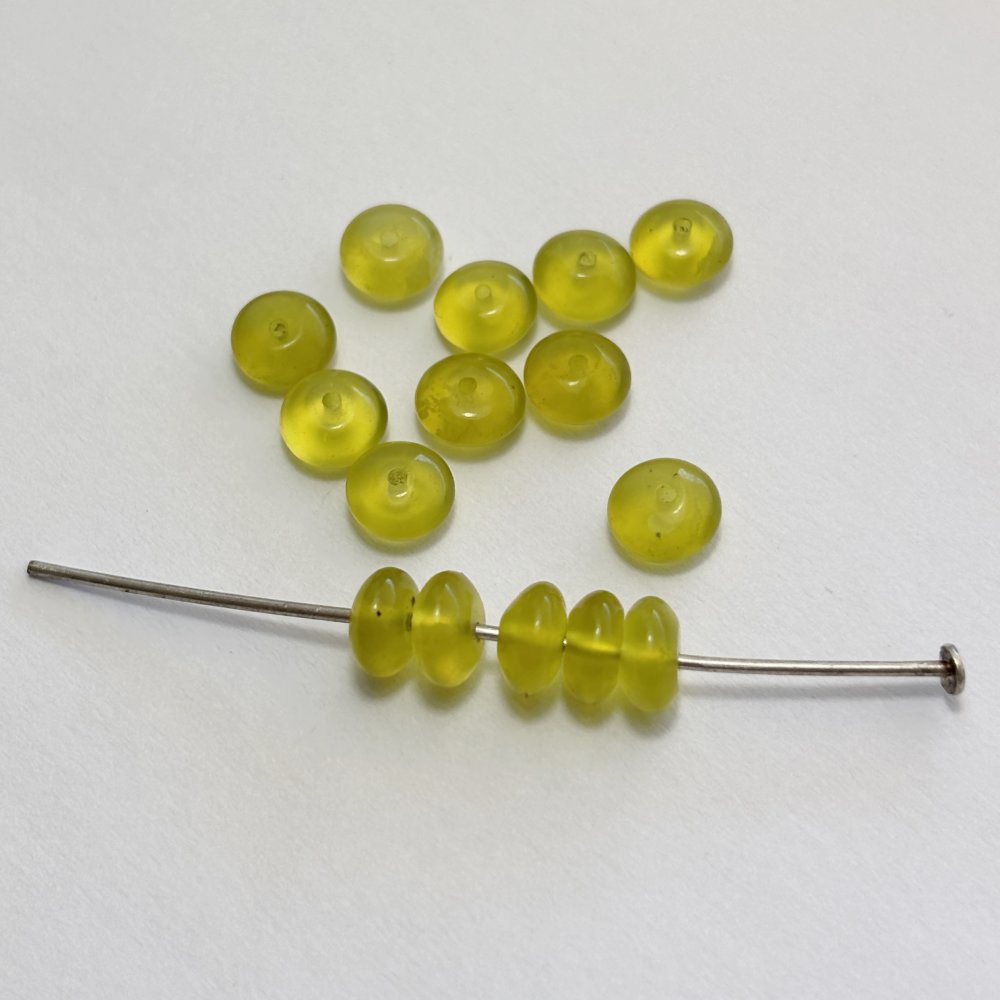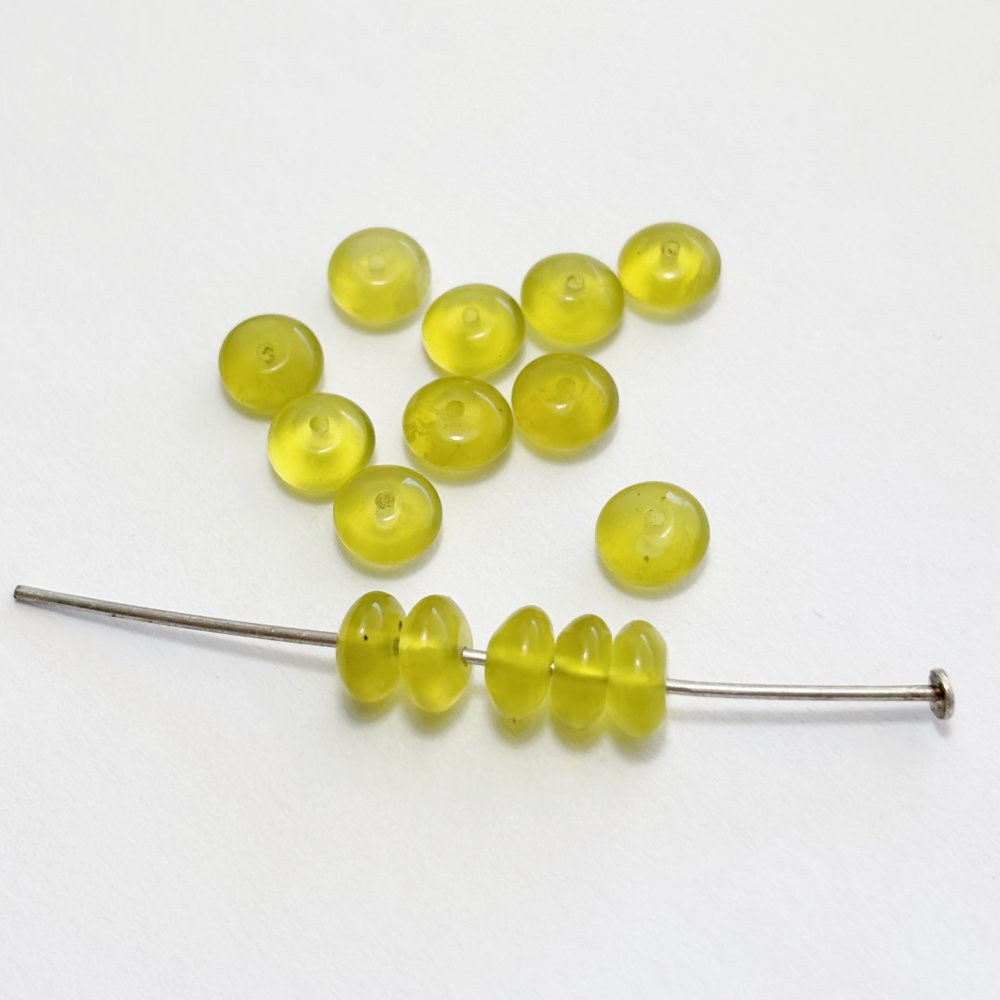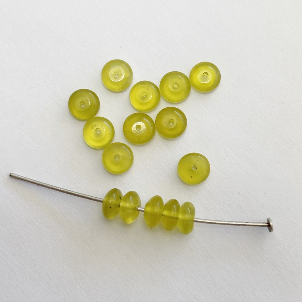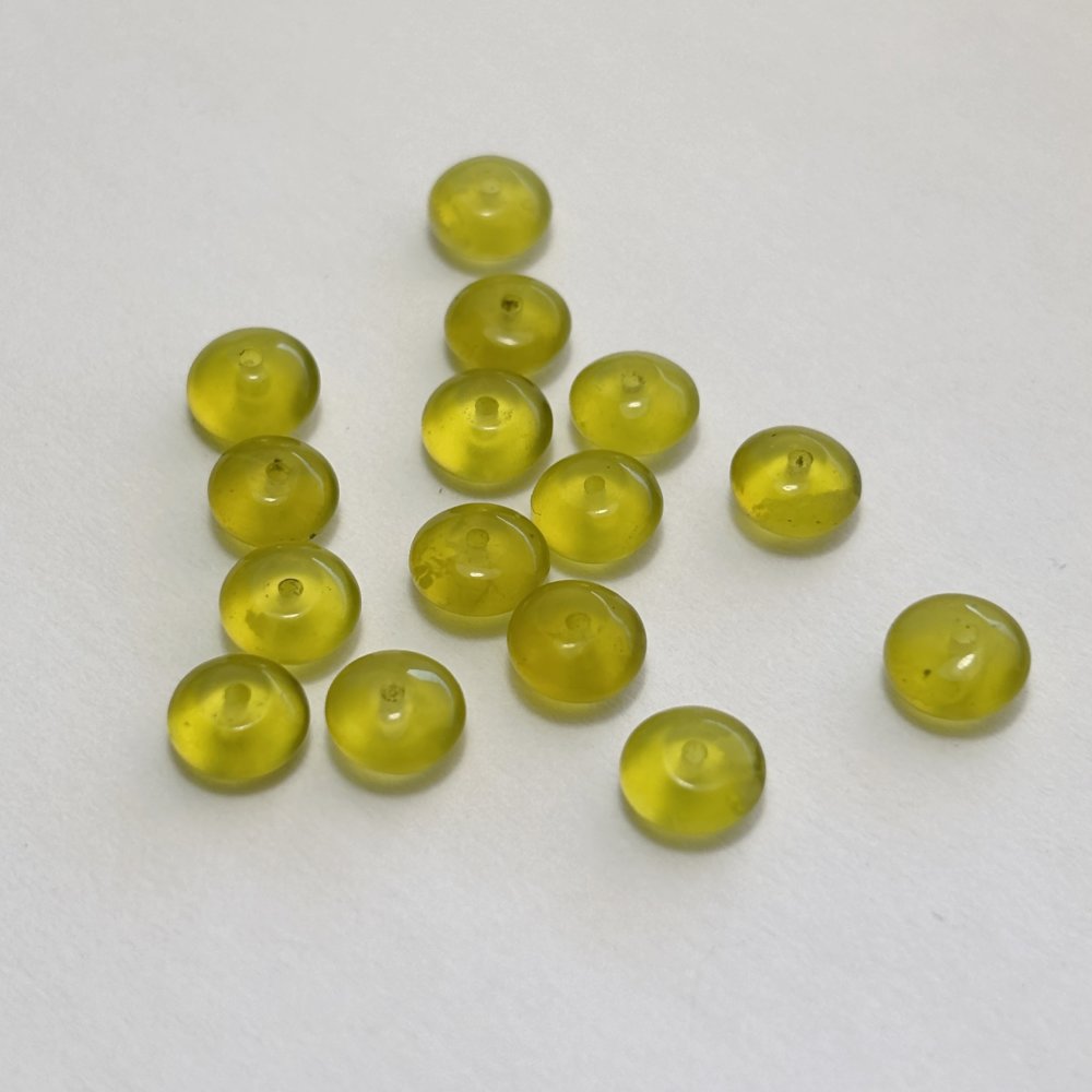 Lot de 15 perles en serpentine naturelle, forme bouton 3×6 mm. Pierre naturelle vert anis translucide, idéale pour créations de bijoux fins et lumineux.