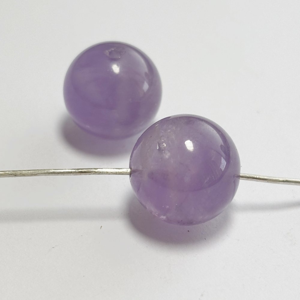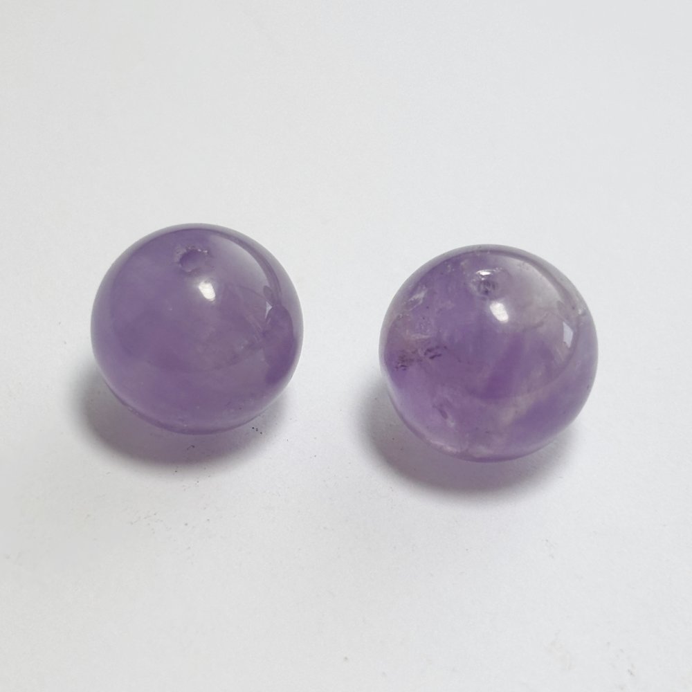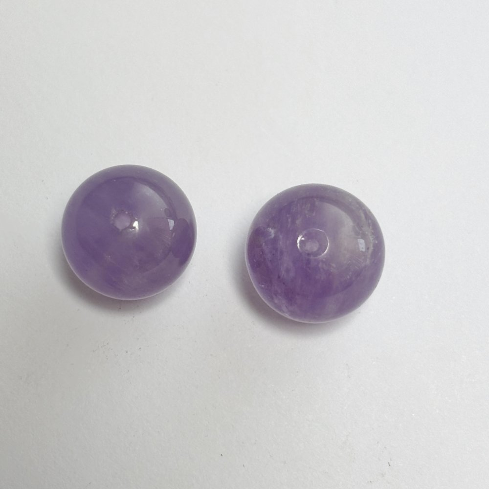 Lot unique de 2 perles naturelles en améthyste lavande (15 mm, trou 1 mm). Teinte douce et lumineuse, idéale pour vos créations raffinées.
