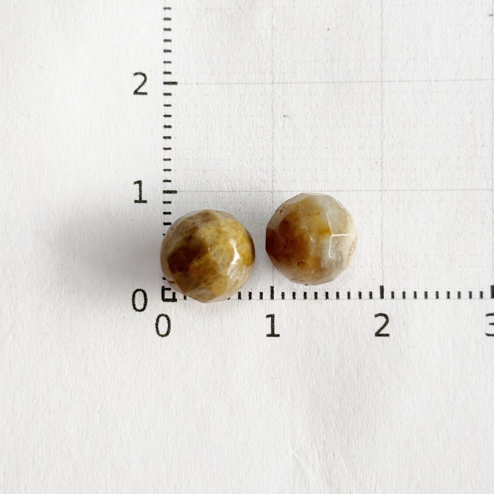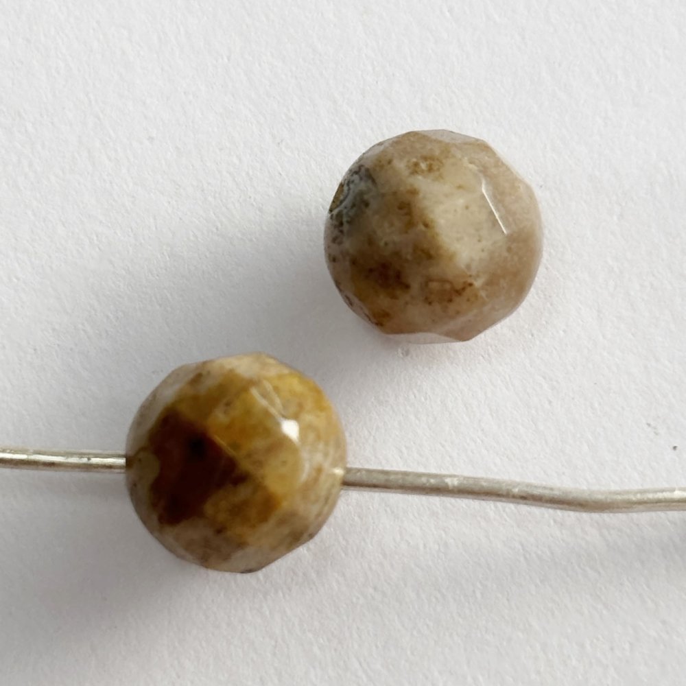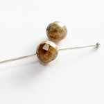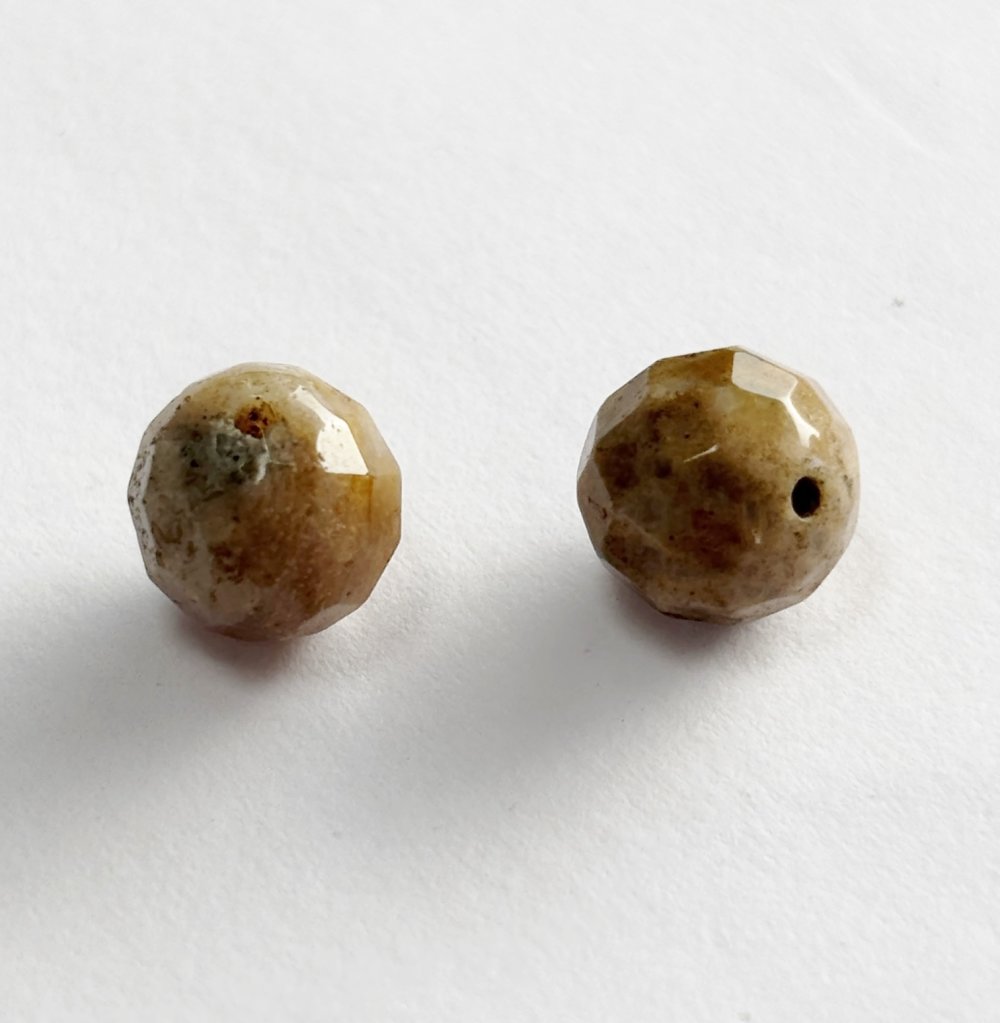 Paire de perles naturelles Aigue Marine dans la masse, 8 mm, facettées, aux teintes subtiles de vert, miel et beige. Parfaites pour des boucles d’oreilles uniques et charmeuses.
