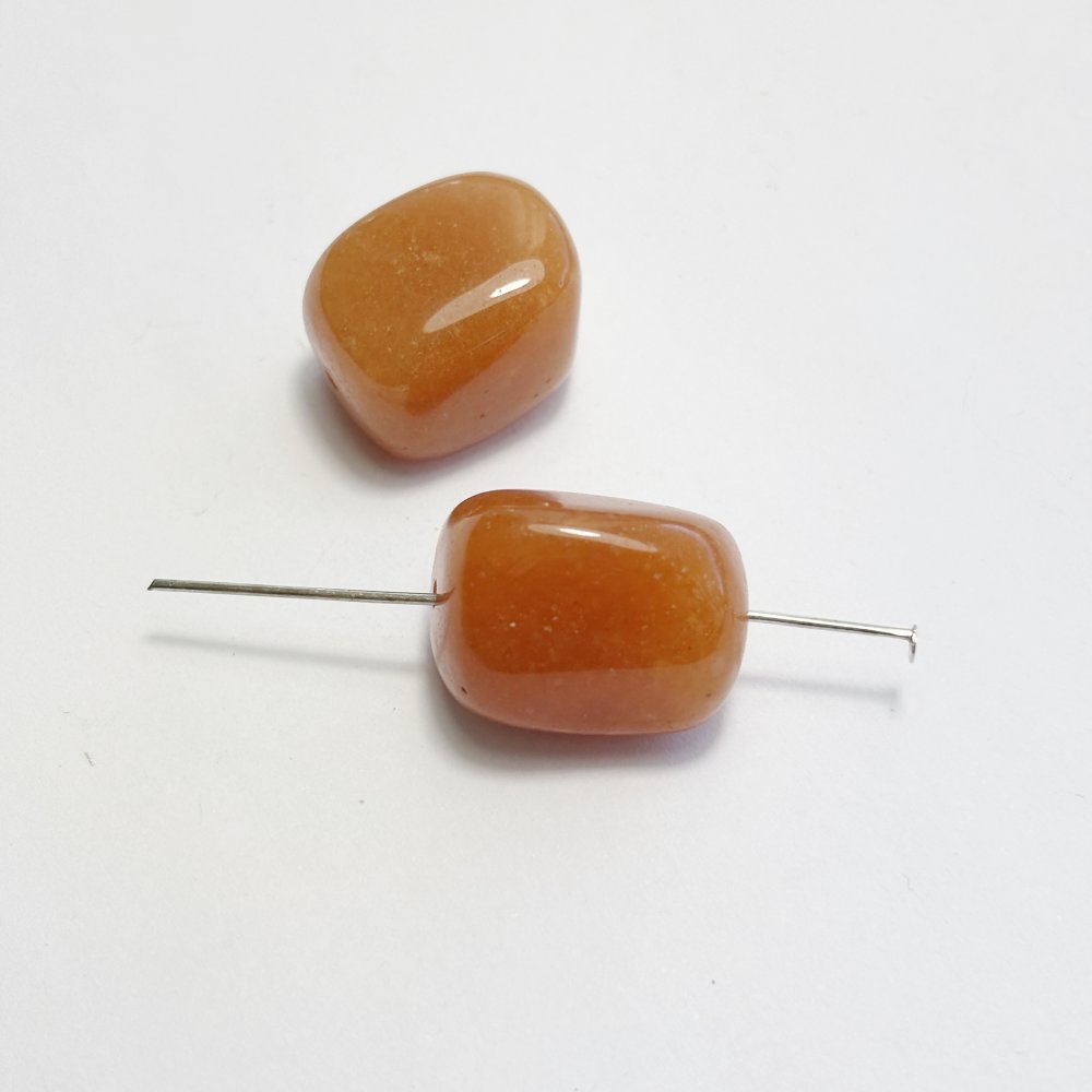 Perles en aventurine orange naturelle, forme roulée irrégulière, environ 20 mm. Pierre chaleureuse et lumineuse, idéale pour vos créations solaires.
