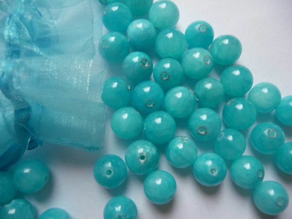 Je vous propose un lot de 20 ravissantes perles en pierre naturelle, rondes, couleur bleu-turquoise, aspect marbré. Diamètre 10 mm.