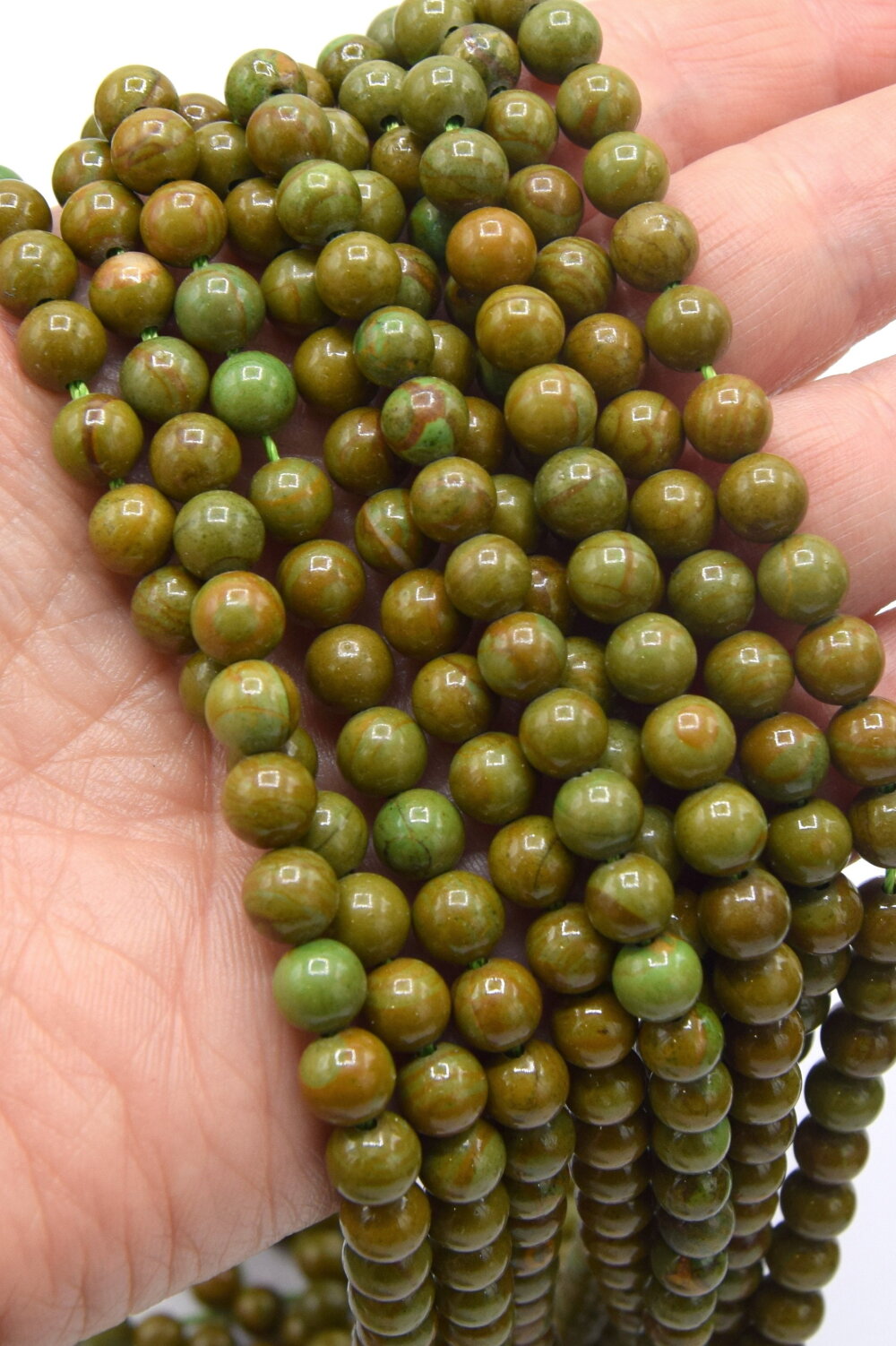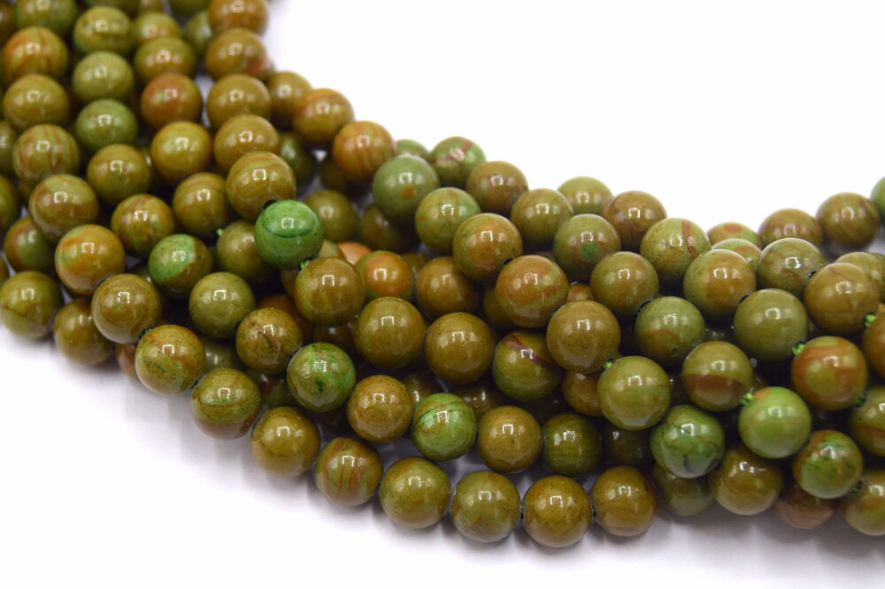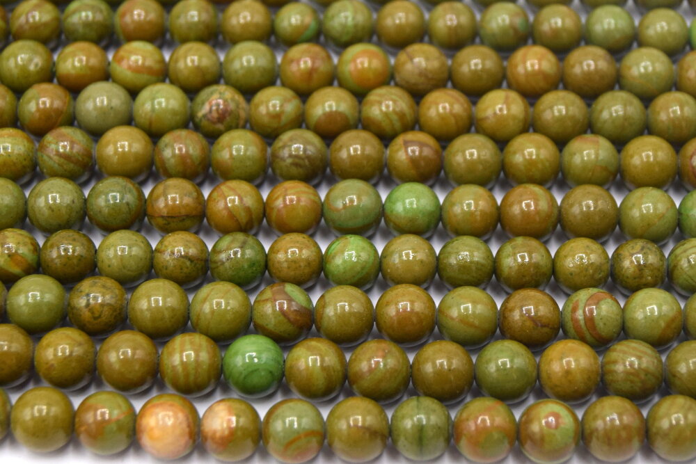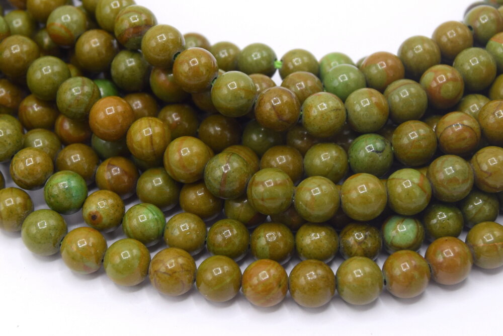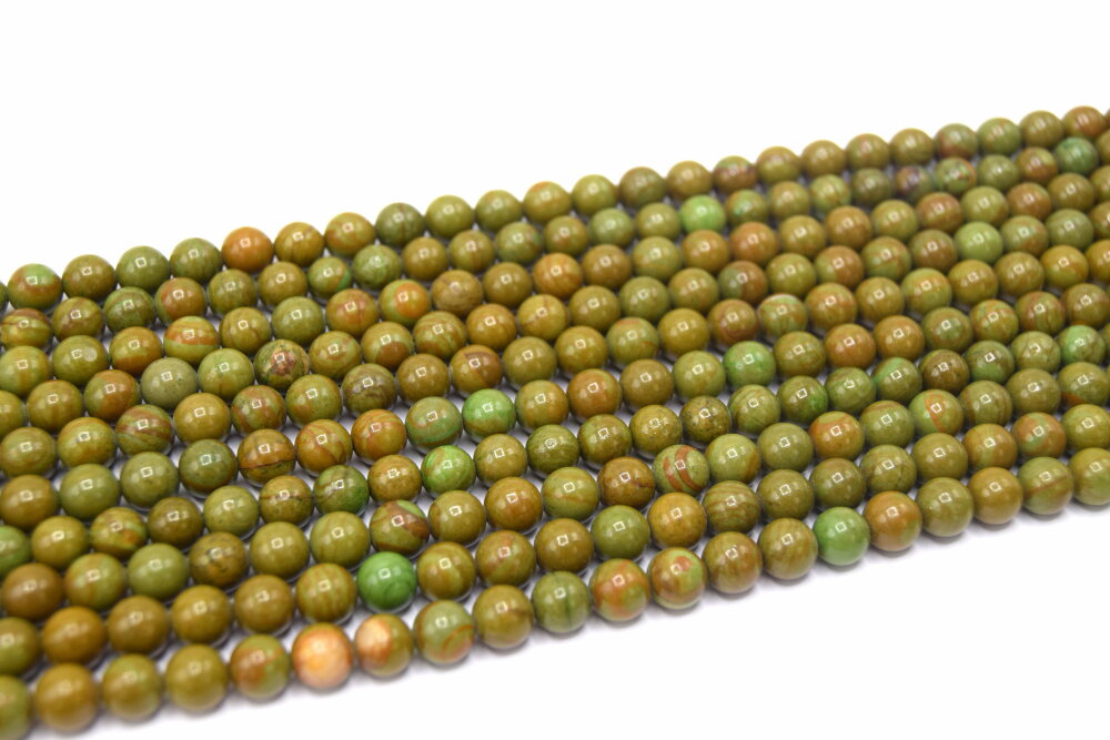 Perles de jaspe impérial synthétique ronde, teinté vert 6mm.