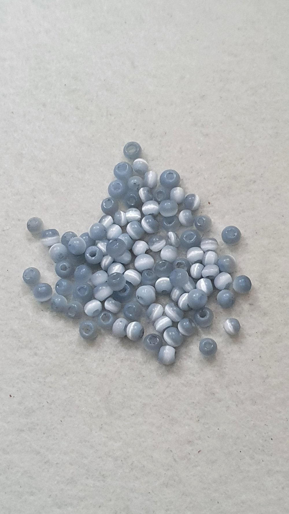 20 perles oeil de tigre gris bleuté blanc 4mm. Trou de 0.8mm.