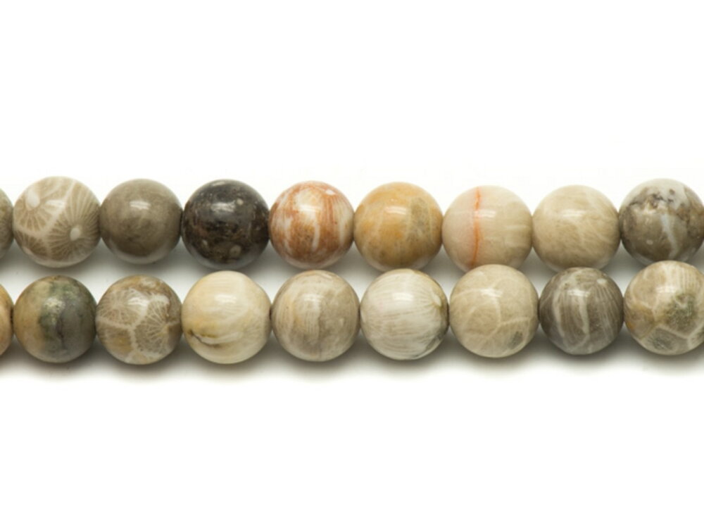 20pc - Perles pierre Corail Fossile Fossilisé Boules 4mm Beige Gris Marron