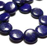 2pc - Perles Pierre Lapis Lazuli Palets Rond plat 12mm bleu nuit doré
