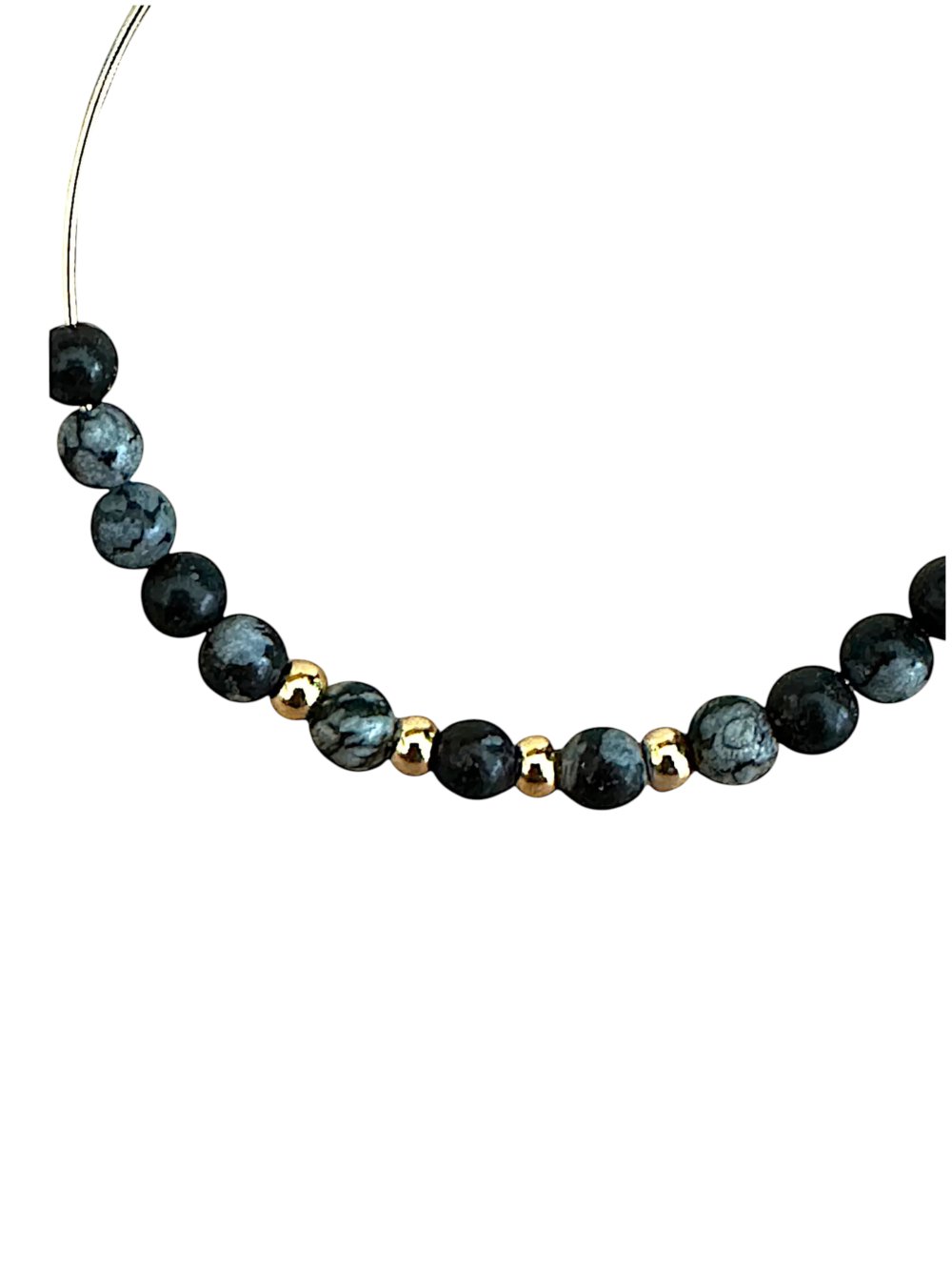 Perle Obsidienne flocon de neige couleur noire et grise.
