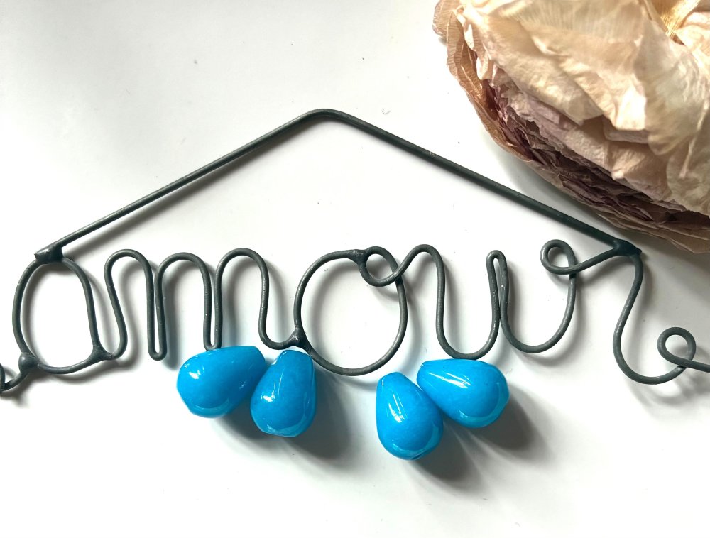 4 perles gouttes en pierre bleue
