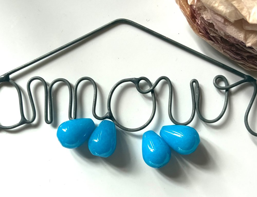 4 perles gouttes bleues en pierre