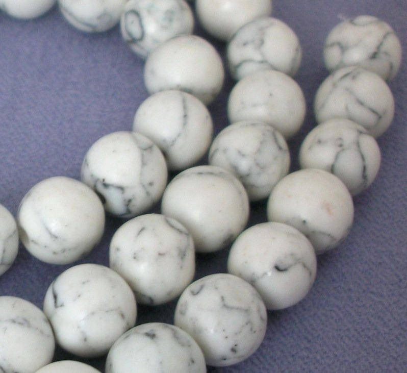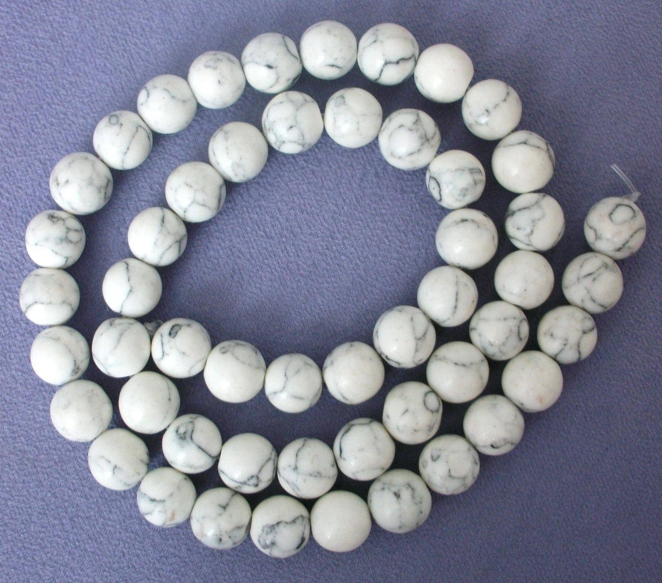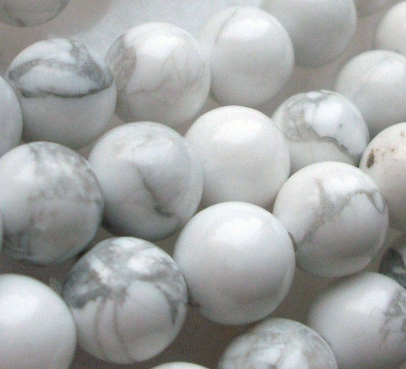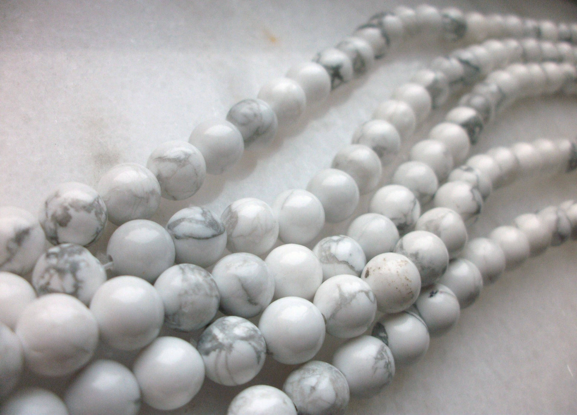4 Perles Percé Howlite Blanc gris 8mm Pierre Fine Gemme Pierre Naturelle semi précieuse