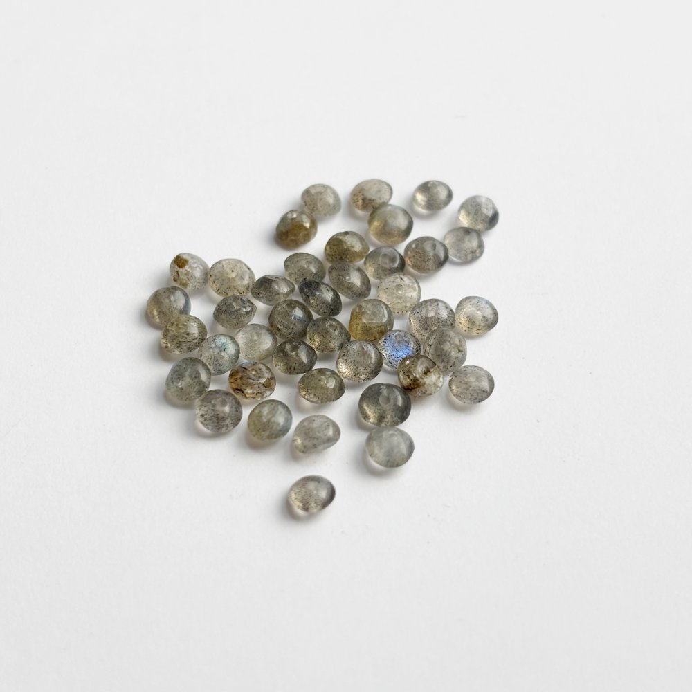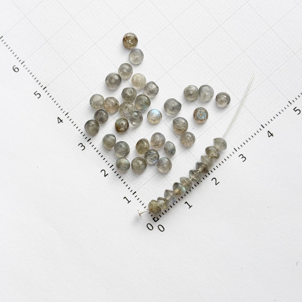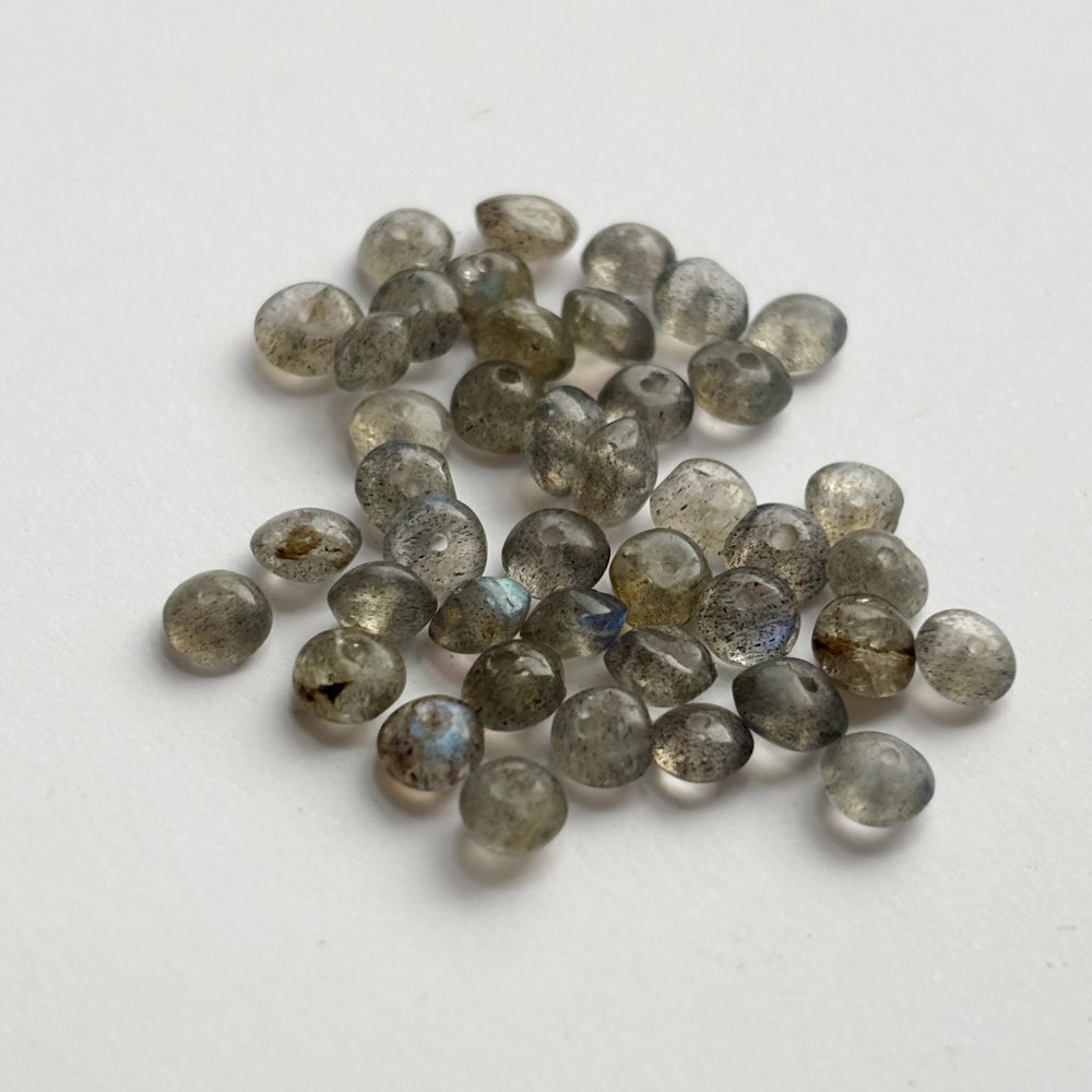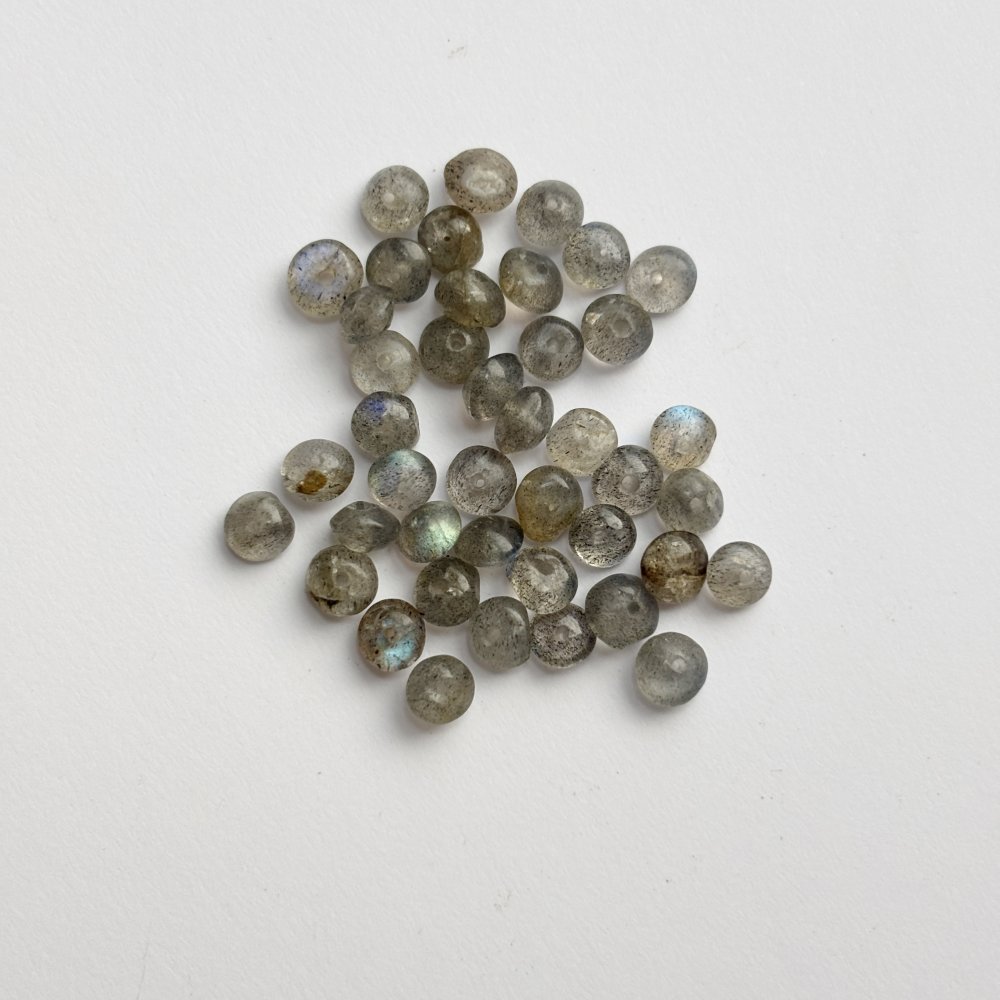 Lot de 40 perles en labradorite naturelle, forme boutons irréguliers de 4 mm, trou 0,5 mm. Pierres aux reflets bleutés, idéales pour la création de bijoux uniques et raffinés.
