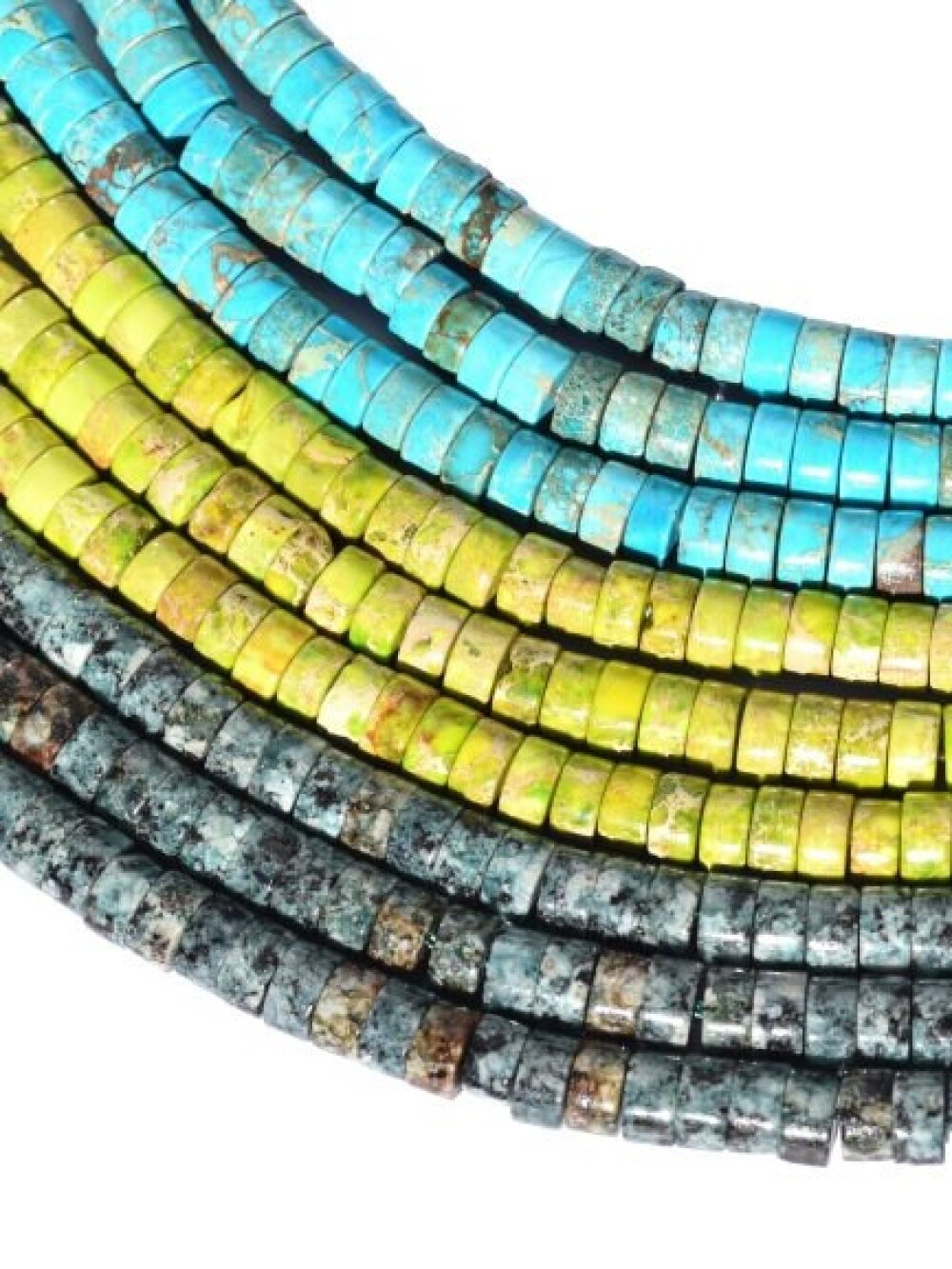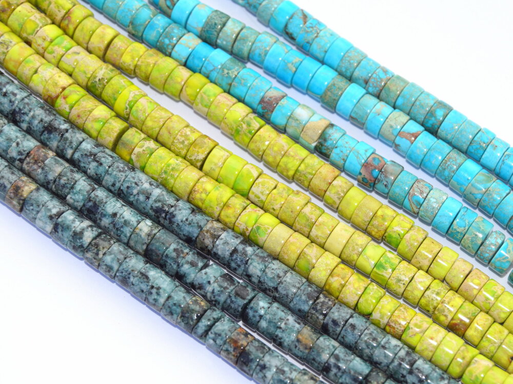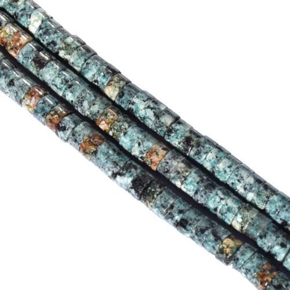 40 Perles heishi de jaspe impérial 6x3mm couleur vert, turquoise, gris vert