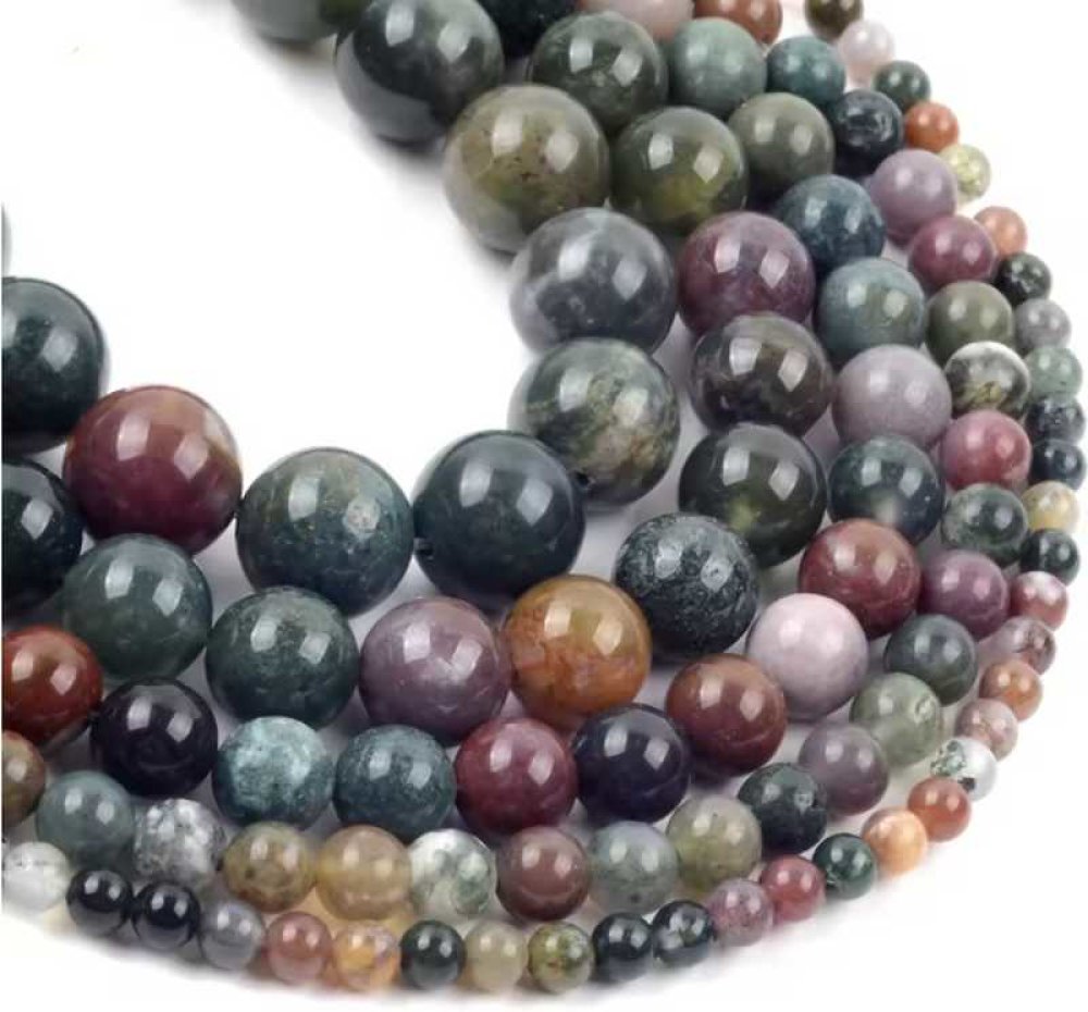 LOT DE 5 PIECES - AGATE INDIENNE - PIERRE GEMME - PERLES RONDES - GRANDE VARIÉTÉ DE COULEURS ET NUANCES