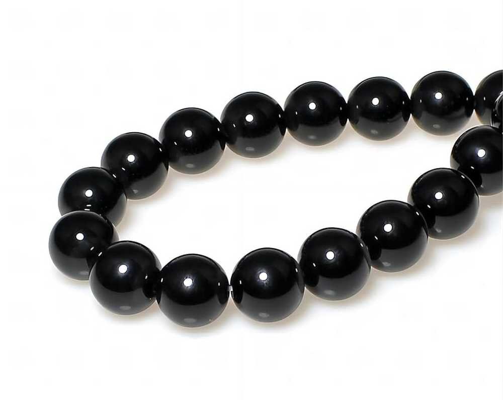 LOT DE 5 PIECES - AGATE NOIRE - ONYX - PIERRE GEMME - PERLES RONDES - NOIR