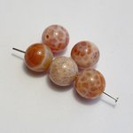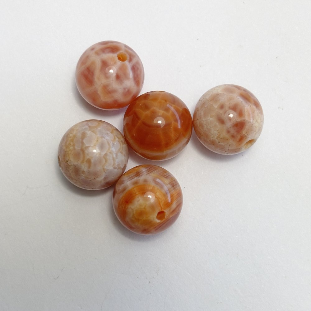 Lot de 5 perles en agate craquelée naturelle orange de 12 mm. Nuances lumineuses et veinées, idéales pour vos créations de bijoux artisanaux.