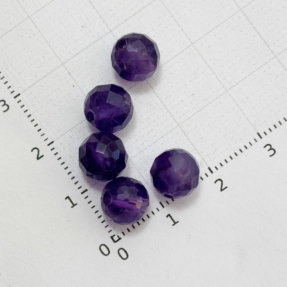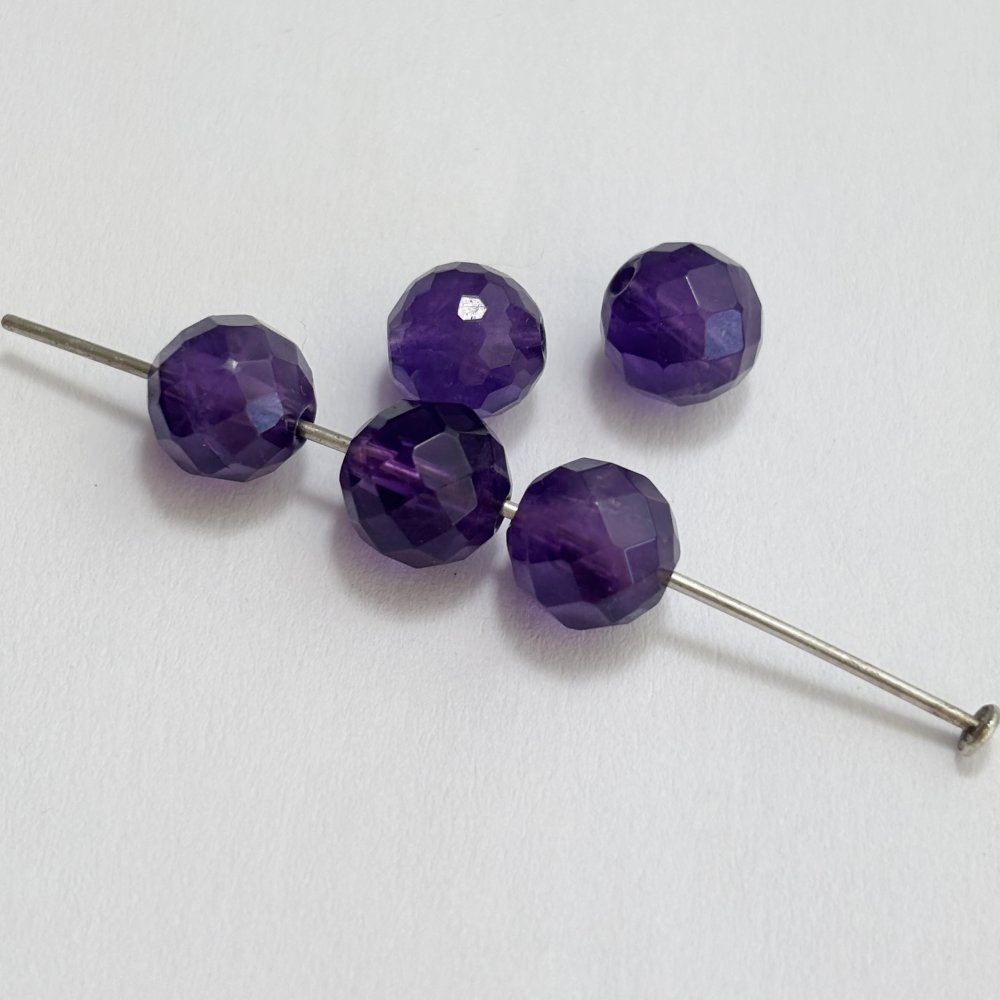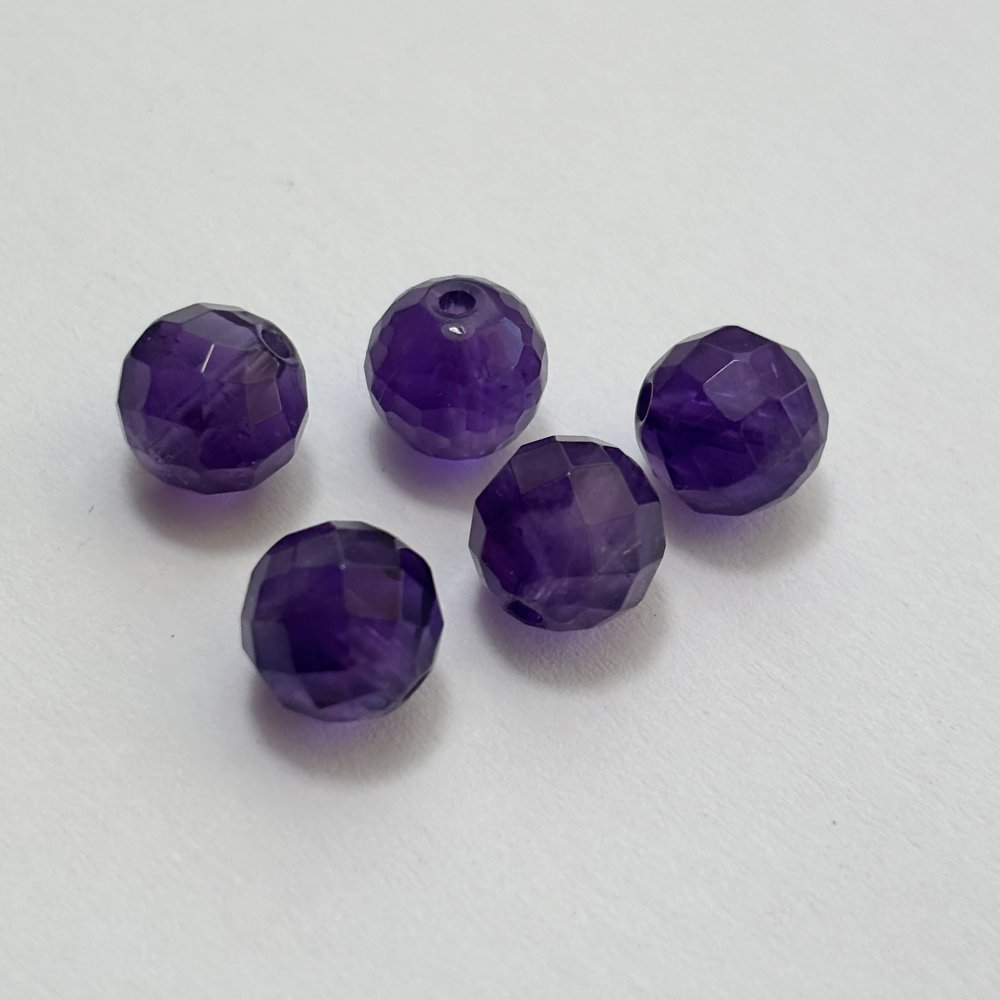 Lot de 5 perles en améthyste naturelle foncée, facettées et lumineuses. Leur éclat violet profond en fait un choix idéal pour vos créations de bijoux raffinés et élégants.