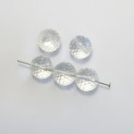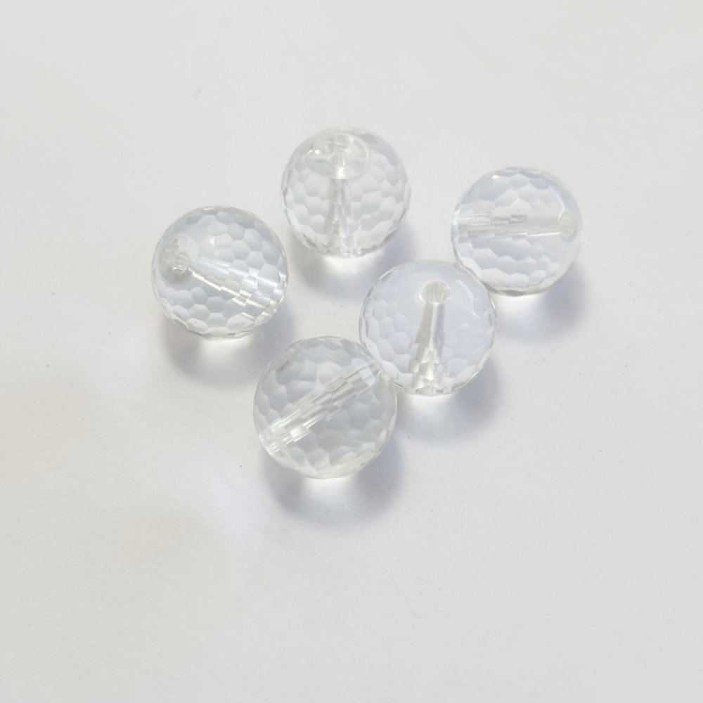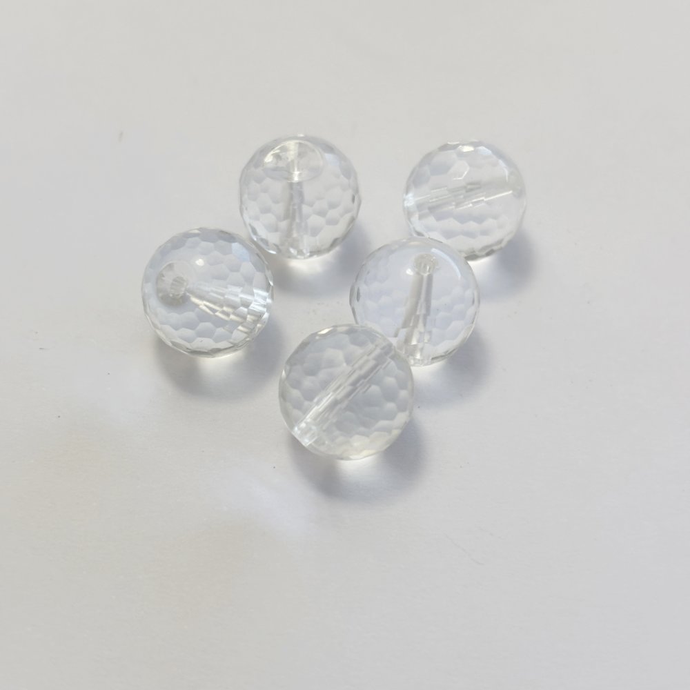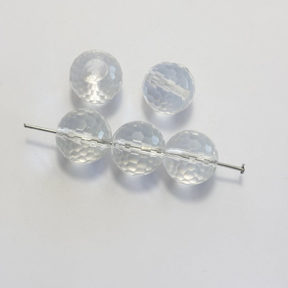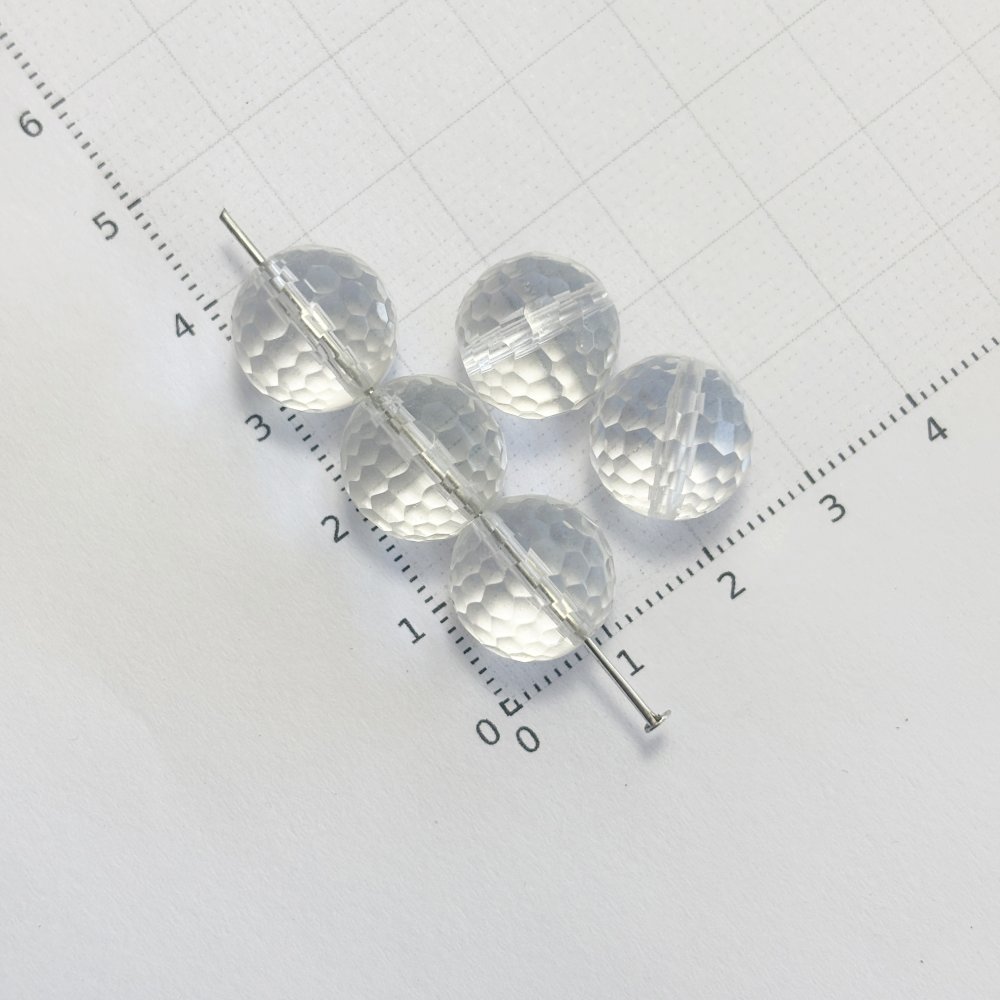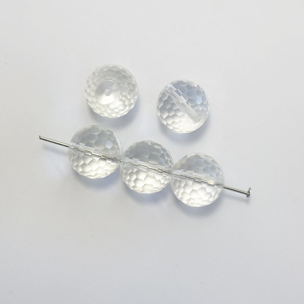 Lot de 5 perles sphériques en cristal de roche naturel de 12 mm, façonnage disco multifacettes offrant une brillance exceptionnelle. Pierres fines idéales pour vos créations de bijoux lumineux et raffinés.