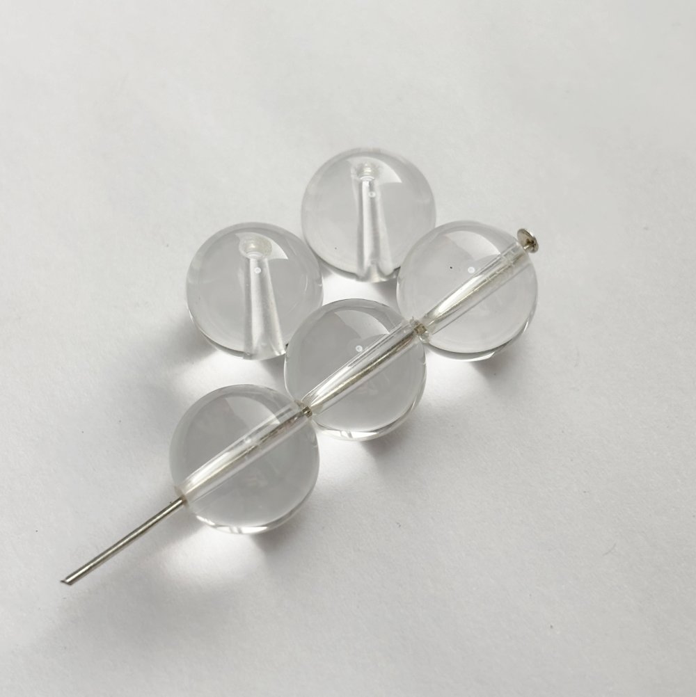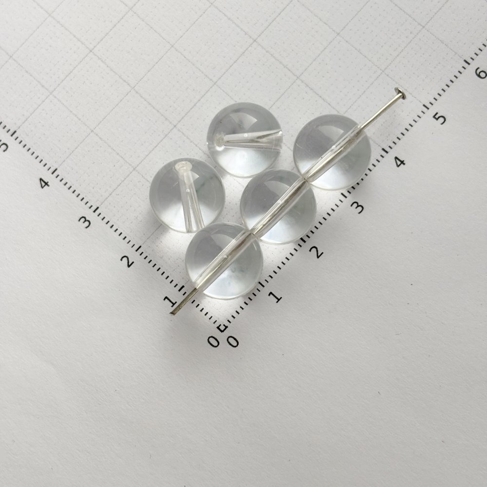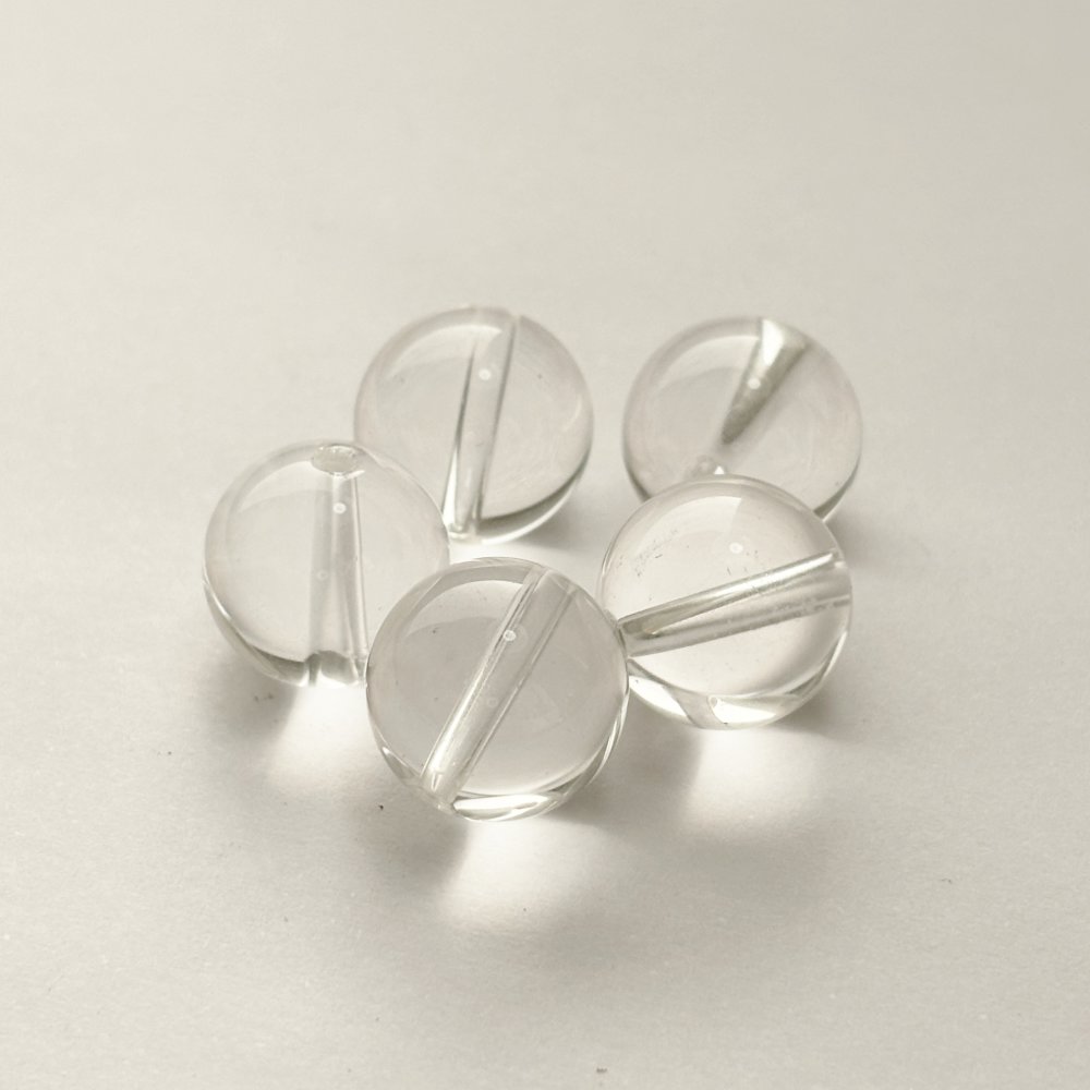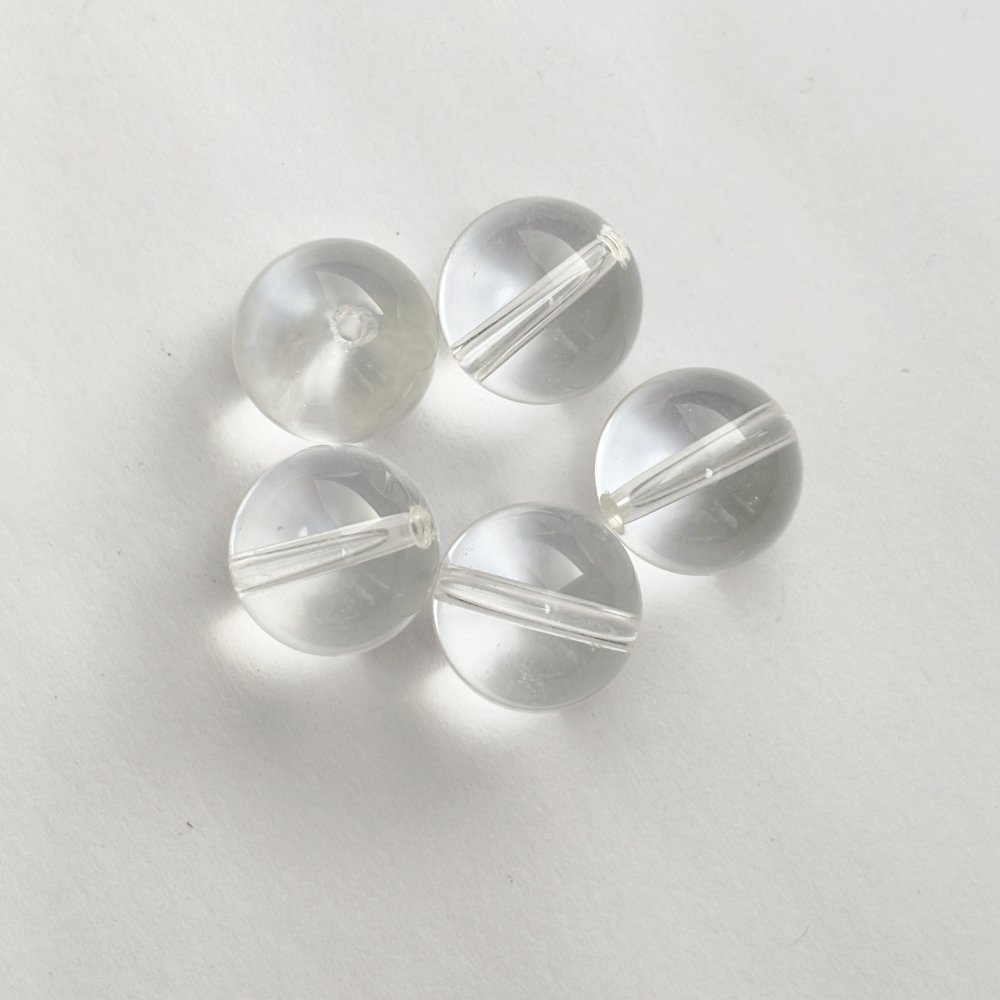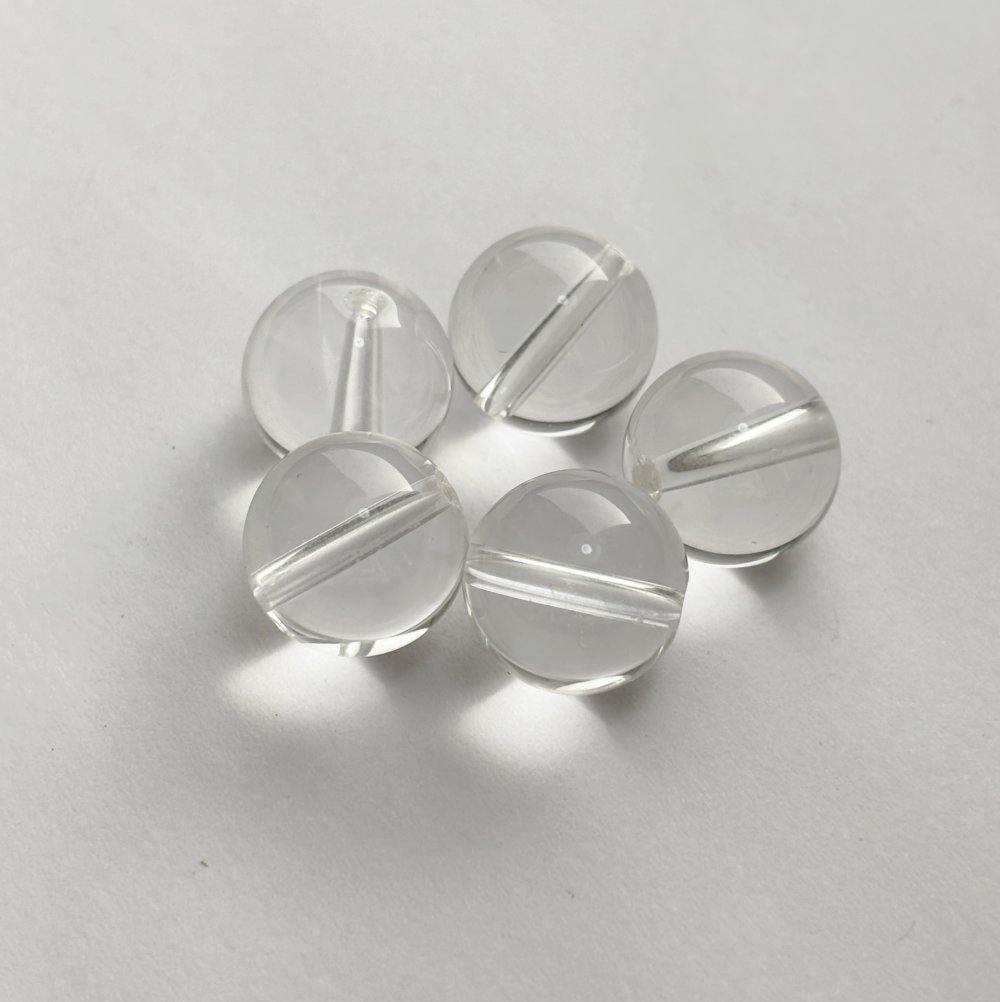 Lot de 5 perles en cristal de roche naturel de 12 mm, trou transversal 1 mm. Transparentes et lumineuses, idéales pour bijoux et créations artisanales.