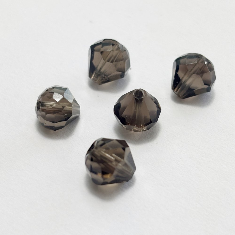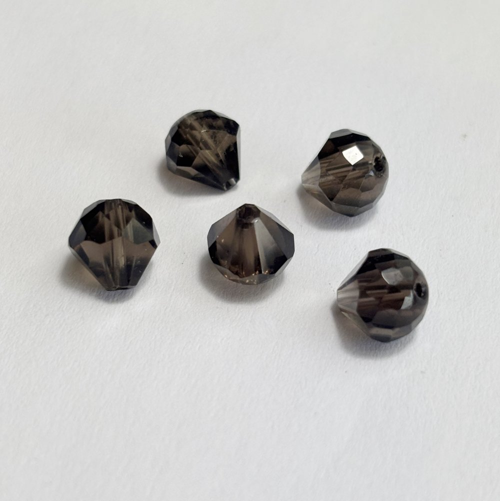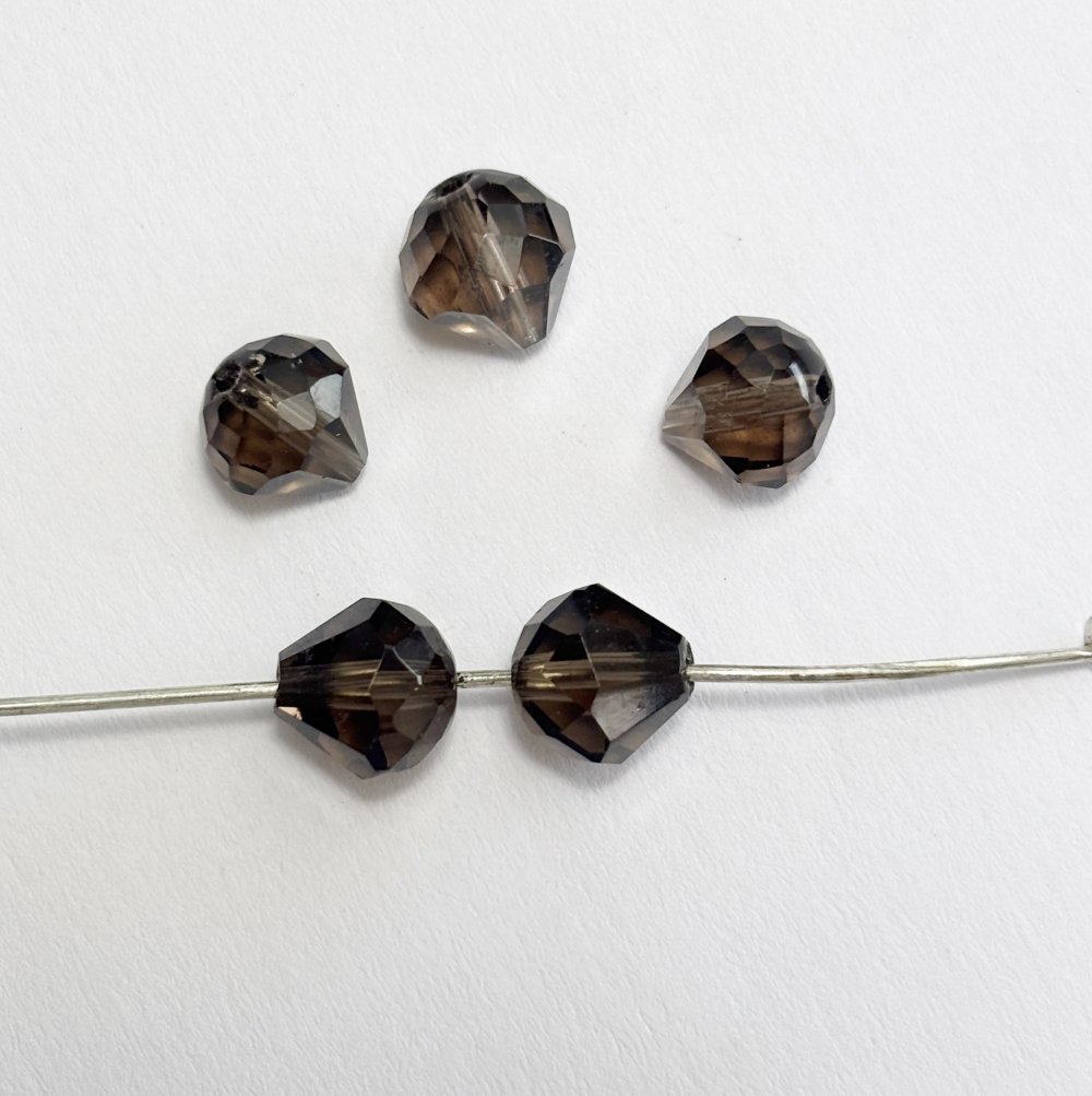 Lot de 5 perles en quartz fumé naturel de 8 mm, taillées en forme de goutte facettée effet diamant. Élégantes et lumineuses, idéales pour bijoux raffinés ou créations sobres.