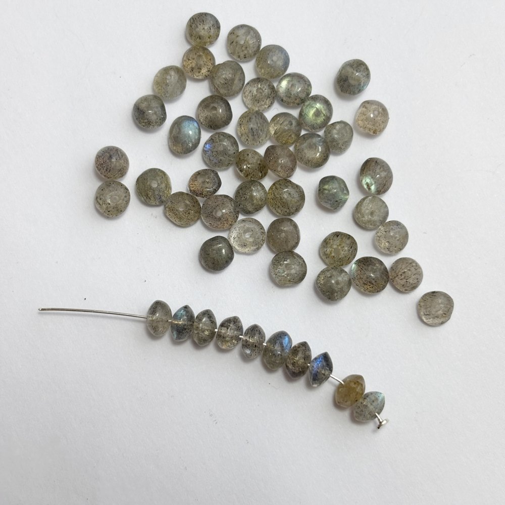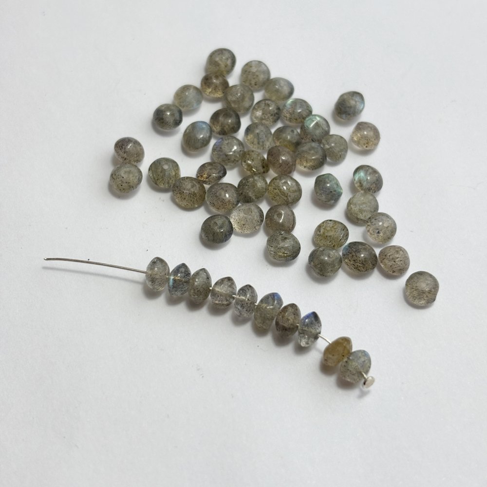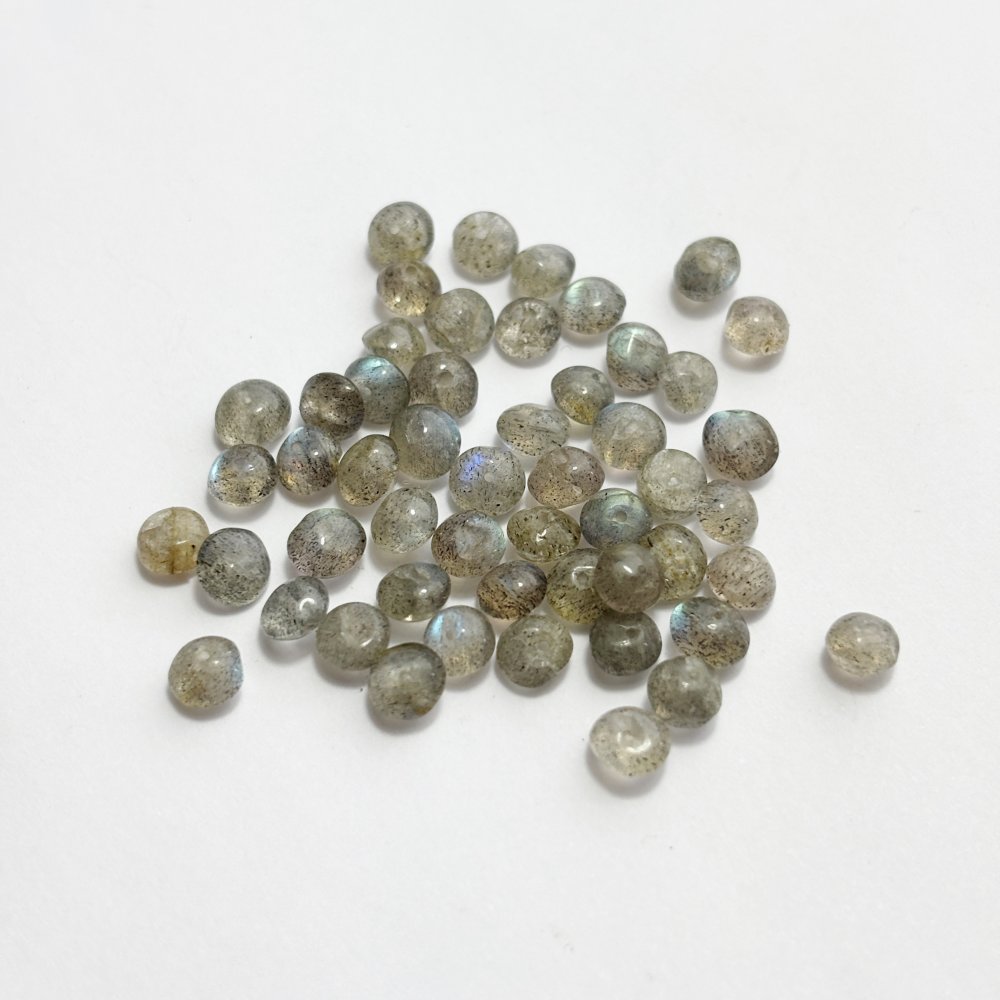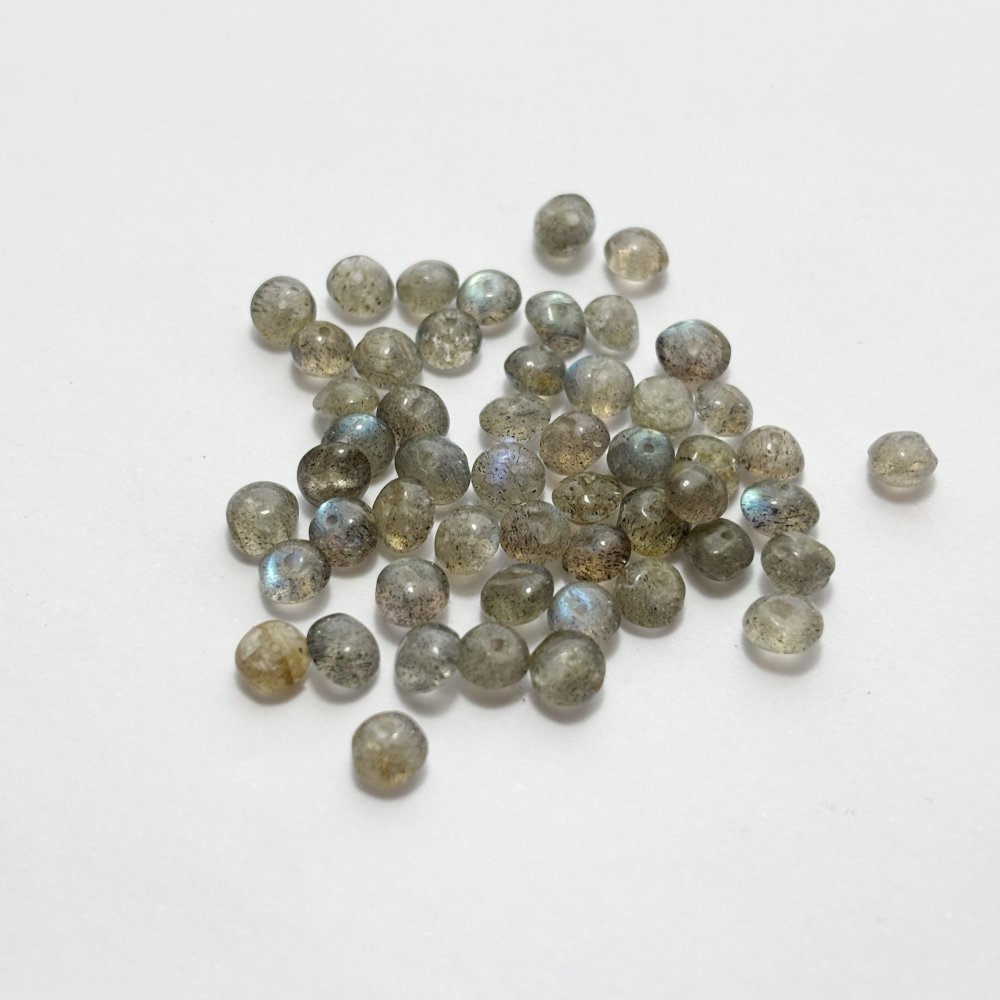 Lot de 50 petites perles bouton en labradorite naturelle de 5 mm, non traitées, aux reflets bleu-vert typiques. Pierre de protection et de lumière, idéale pour bijoux artisanaux et montages raffinés.