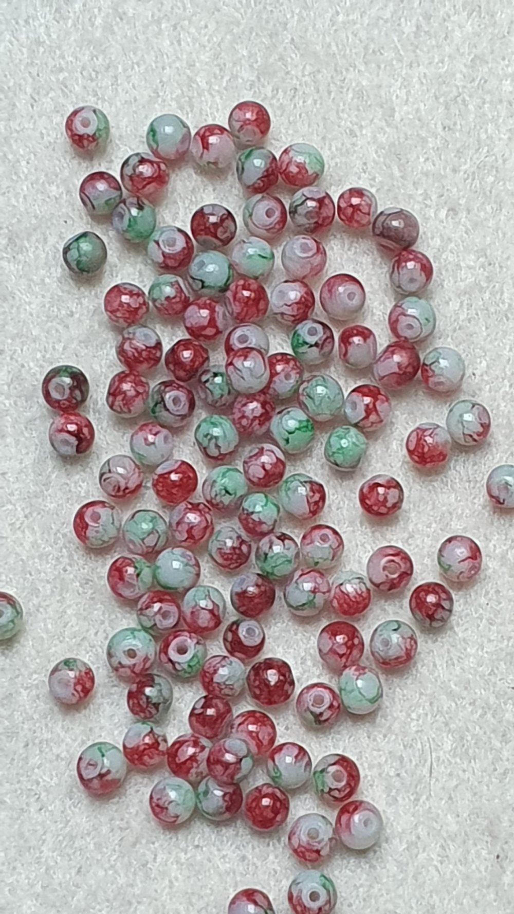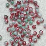 50 perles jade ton vert rouge marbré 4.5x4mm trou de 0.7mm. N°98