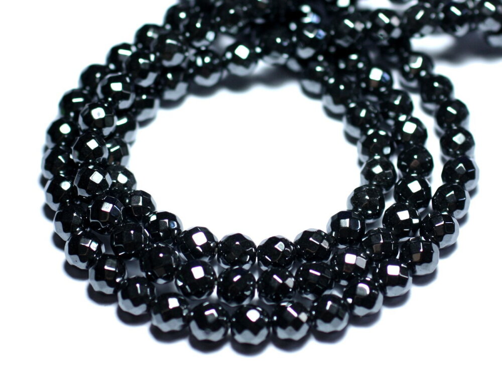 50pc - Perles Pierre Hématite Boules Facettées 4mm Métal noir gris argenté