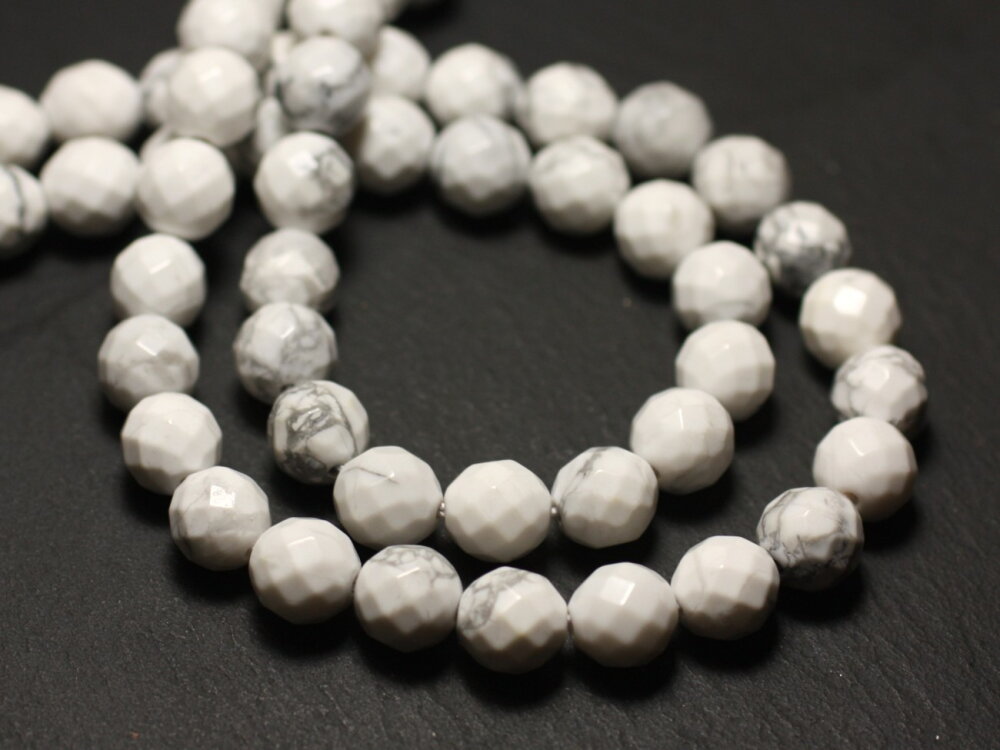 5pc - Perles Pierre Howlite Boules Facettées 8mm blanc gris