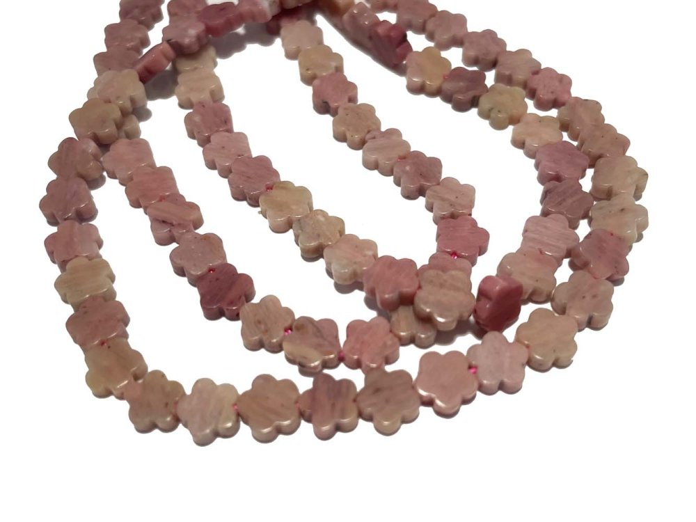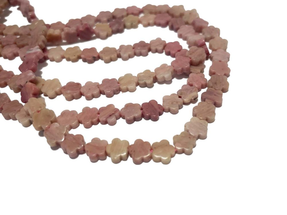 6 mm. Rhodonite naturelle 5 perles fleurs