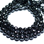 Fil 39cm 100pc environ - Perles Pierre Hématite Boules Facettées 4mm Métal noir gris argenté