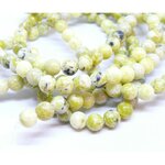 H11Q462 1 fil d'environ 63 perles rondes 6mm Jaspe Jaune Vert coloris 22 Dimension: environ 6mm Trou: environ 1mm Perles et apprêts pour création de bijoux. De nombreux autres coloris et tailles sont à découvrir dans notre eboutique Perlesmania