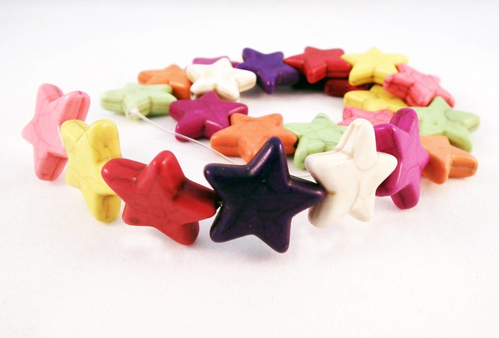 1 Enfilade de perles Howlite multicolores en forme d'Étoiles