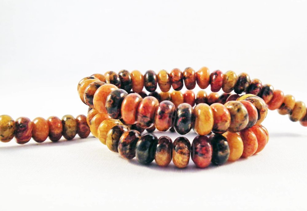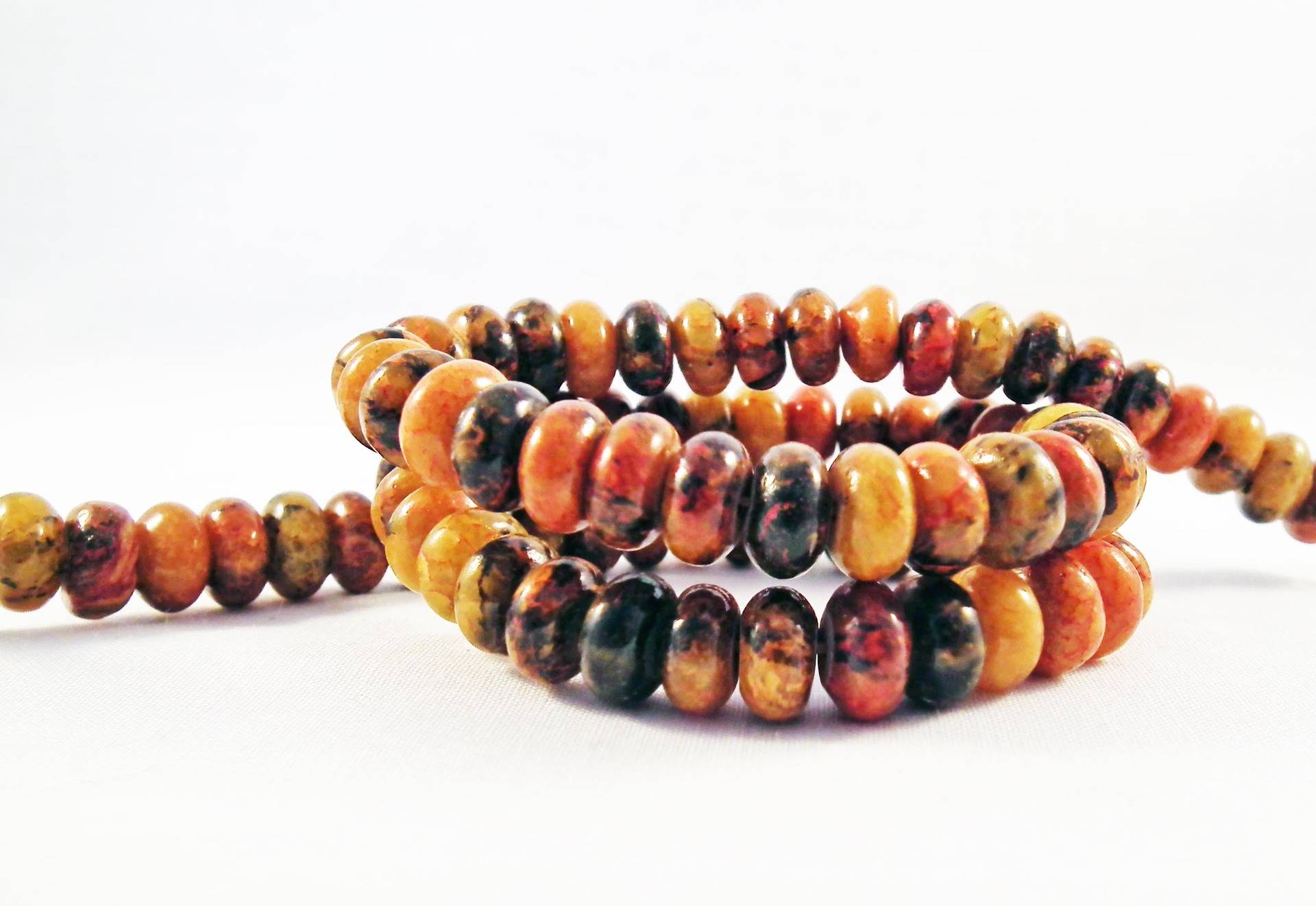 Lot de 10 perles Pierre Abacus Azurite Teintes Marron Jaune Orangé Marbré à Motifs, 5mm X 8mm.