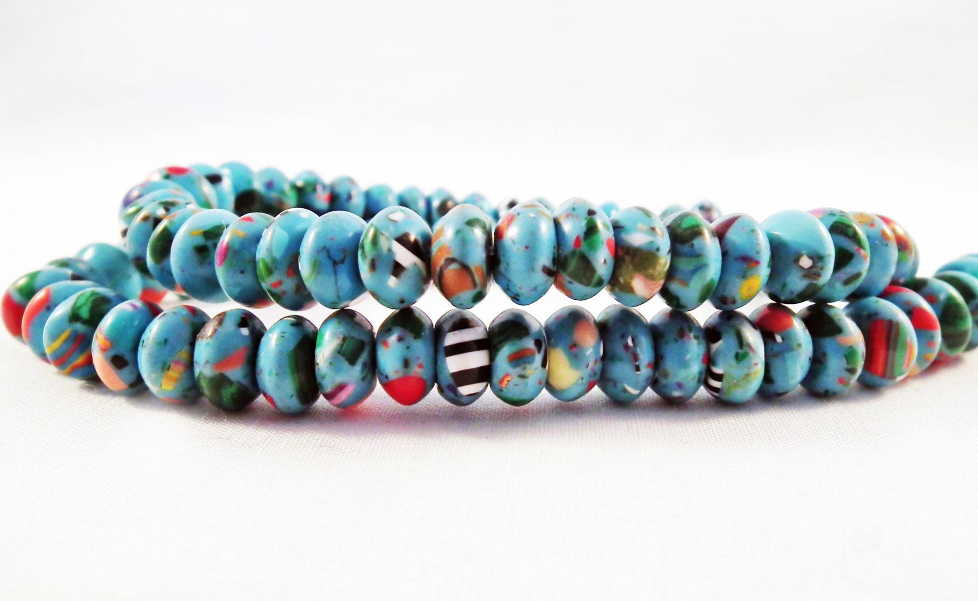 Lot de 10 perles Pierre Abacus de Turquie à Rayures Bleu Marron Rose Rouge zébré Motif Géométrie, 5mm X 8mm.