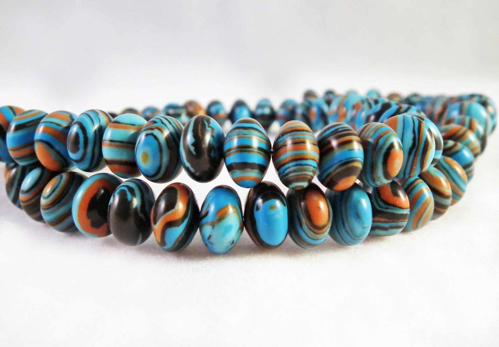 Lot de 10 perles Pierre Abacus de Turquie à Rayures Bleu Marron Noir zébré Géométrie, 5mm X 8mm.
