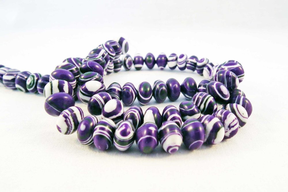 Lot de 10 perles Pierre Abacus de Turquie à Rayures Mauve Violet Blanc zébré Motif Géométrie