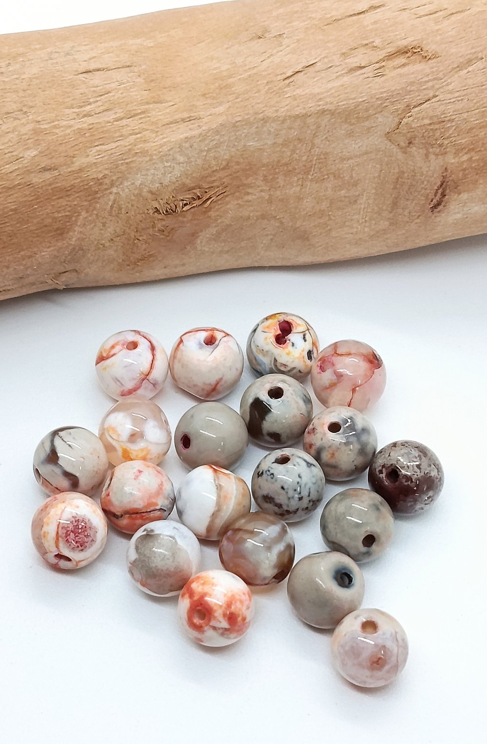 Lot de 20 perles naturelles Agate de Feu Café Orange 8mm
