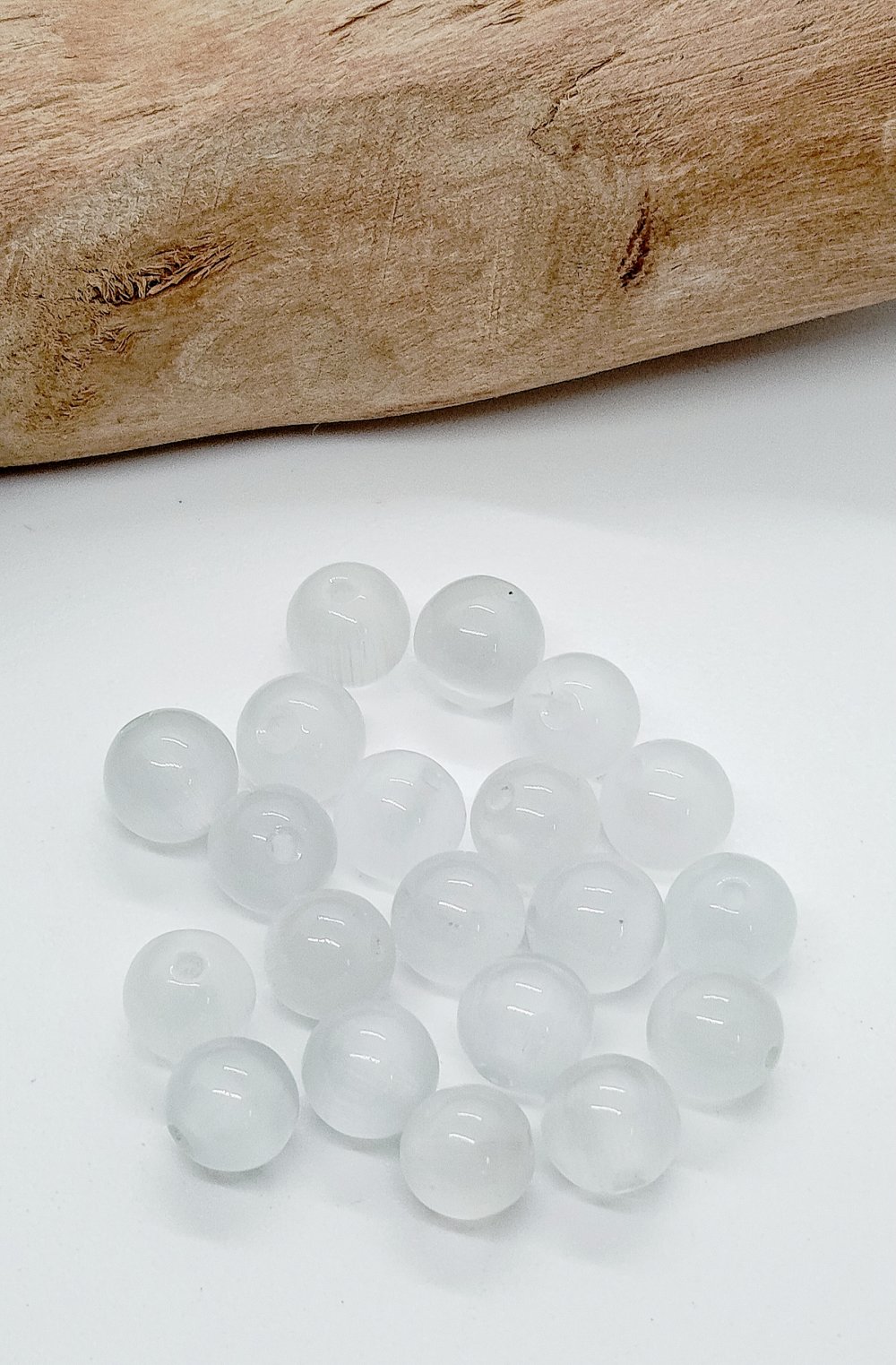 Lot de 20 perles naturelles Oeil de Chat Blanc 8mm