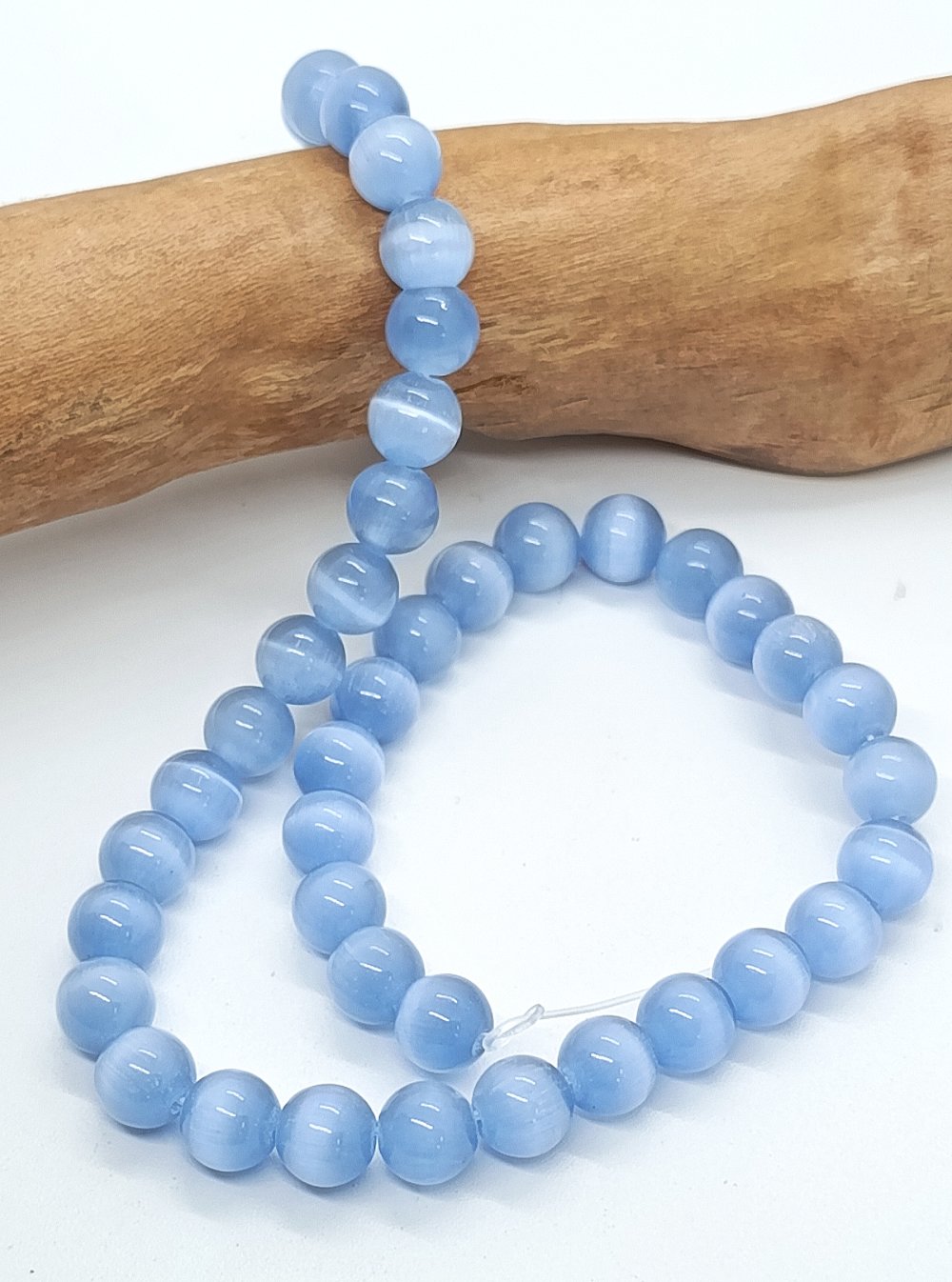 Lot de 20 perles naturelles Oeil de Chat Bleu Ciel 8mm