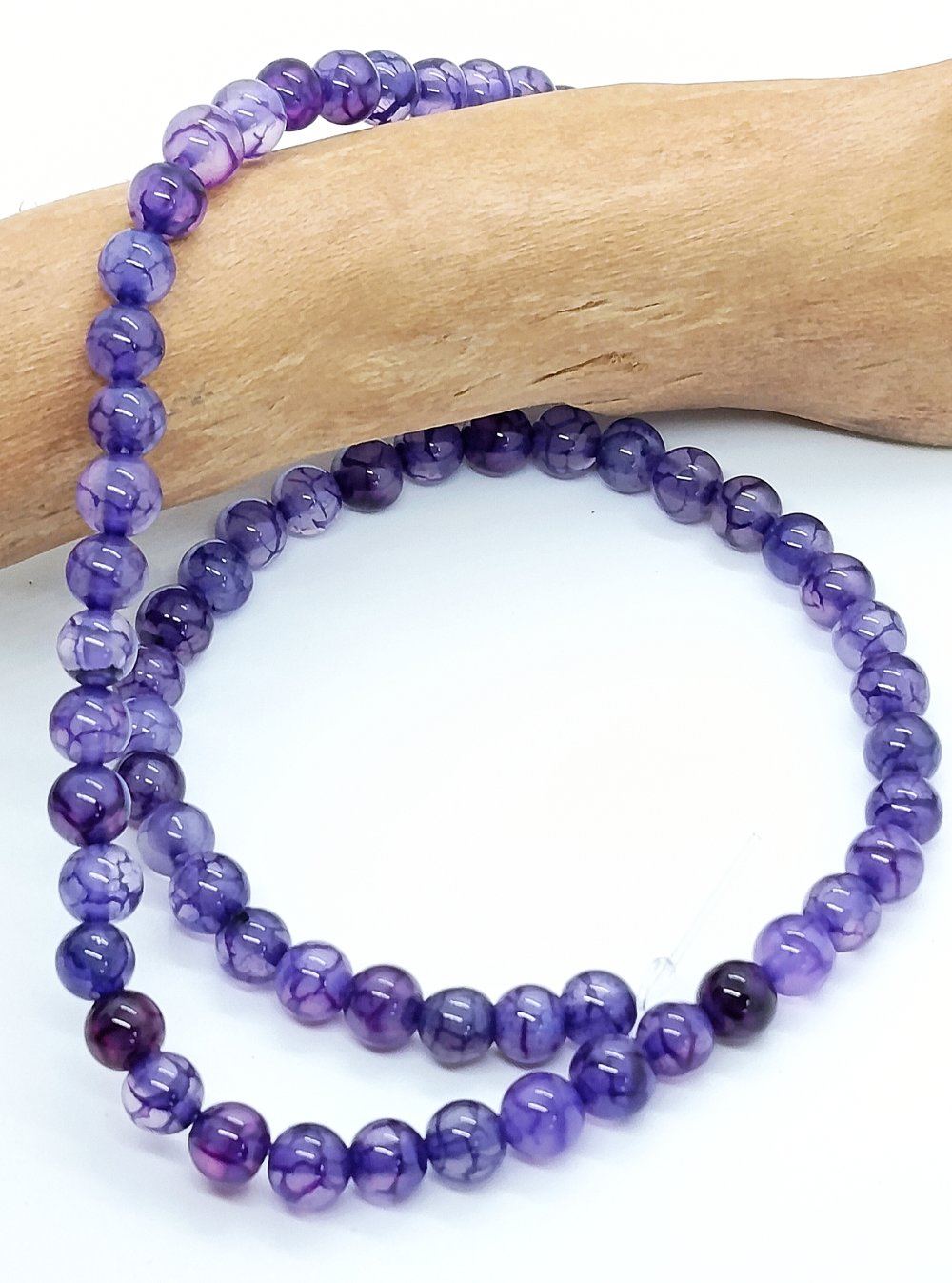 Lot de 30 perles naturelles Agate Veine de Dragon Violet 6mm