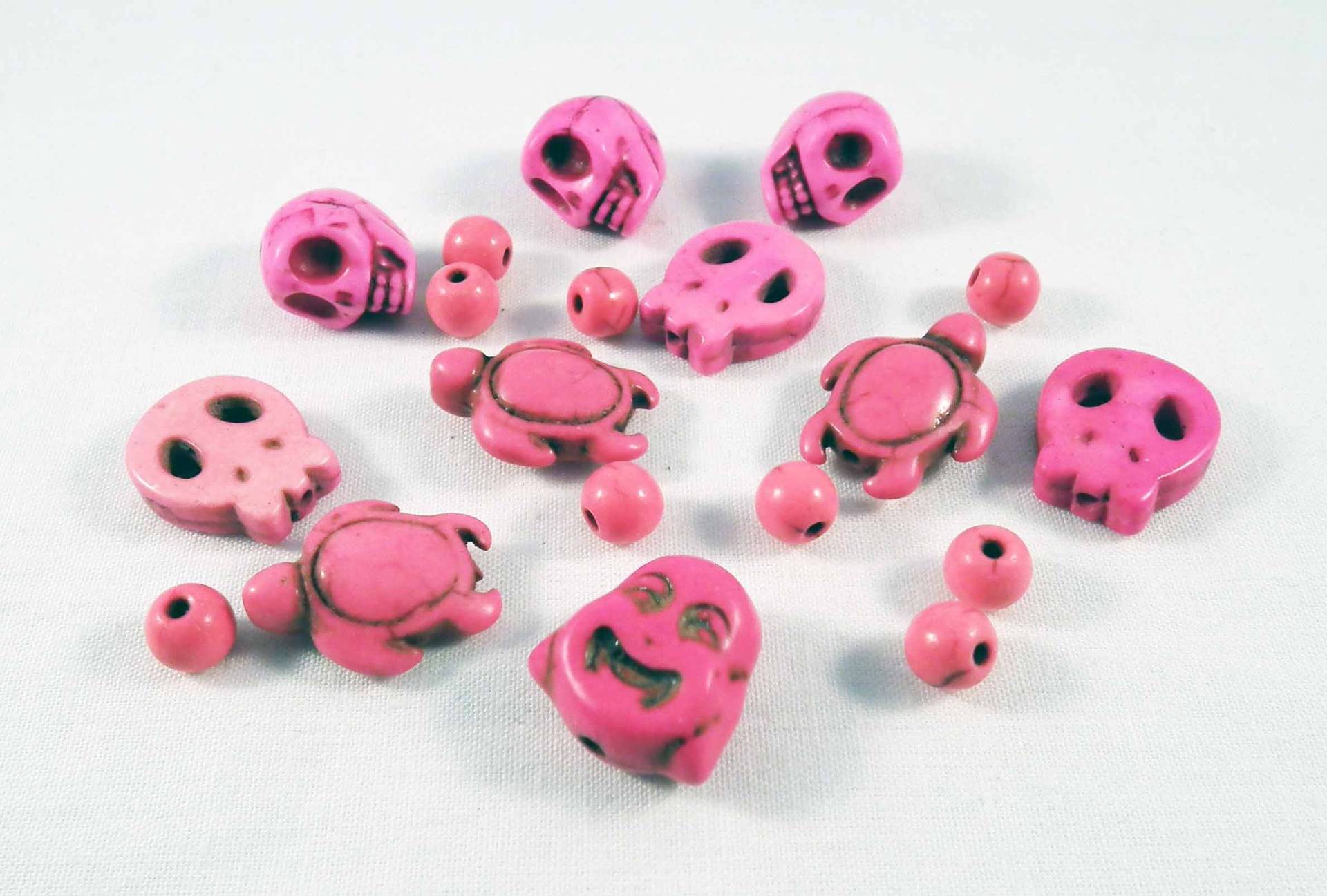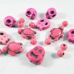 Magnifique lot de 10 Perles Connecteurs Howlite 6 Têtes de Mort, 3 Tortue, et 1 Buddha, avec quelques Perles rondes, de couleur Teintes de Rose.