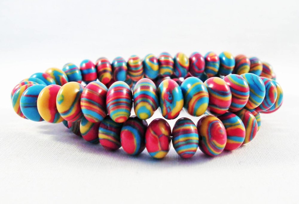 Lot de 10 perles Pierre Abacus de Turquie à Rayures Bleu Jaune Rouge zébré Motif Géométrie, 5mm X 8mm.