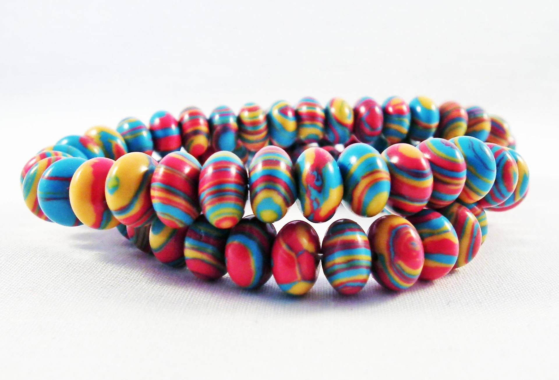 Lot de 10 perles Pierre Abacus de Turquie à Rayures Bleu Jaune Rouge zébré Motif Géométrie