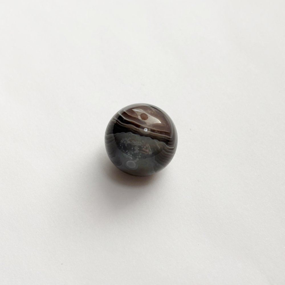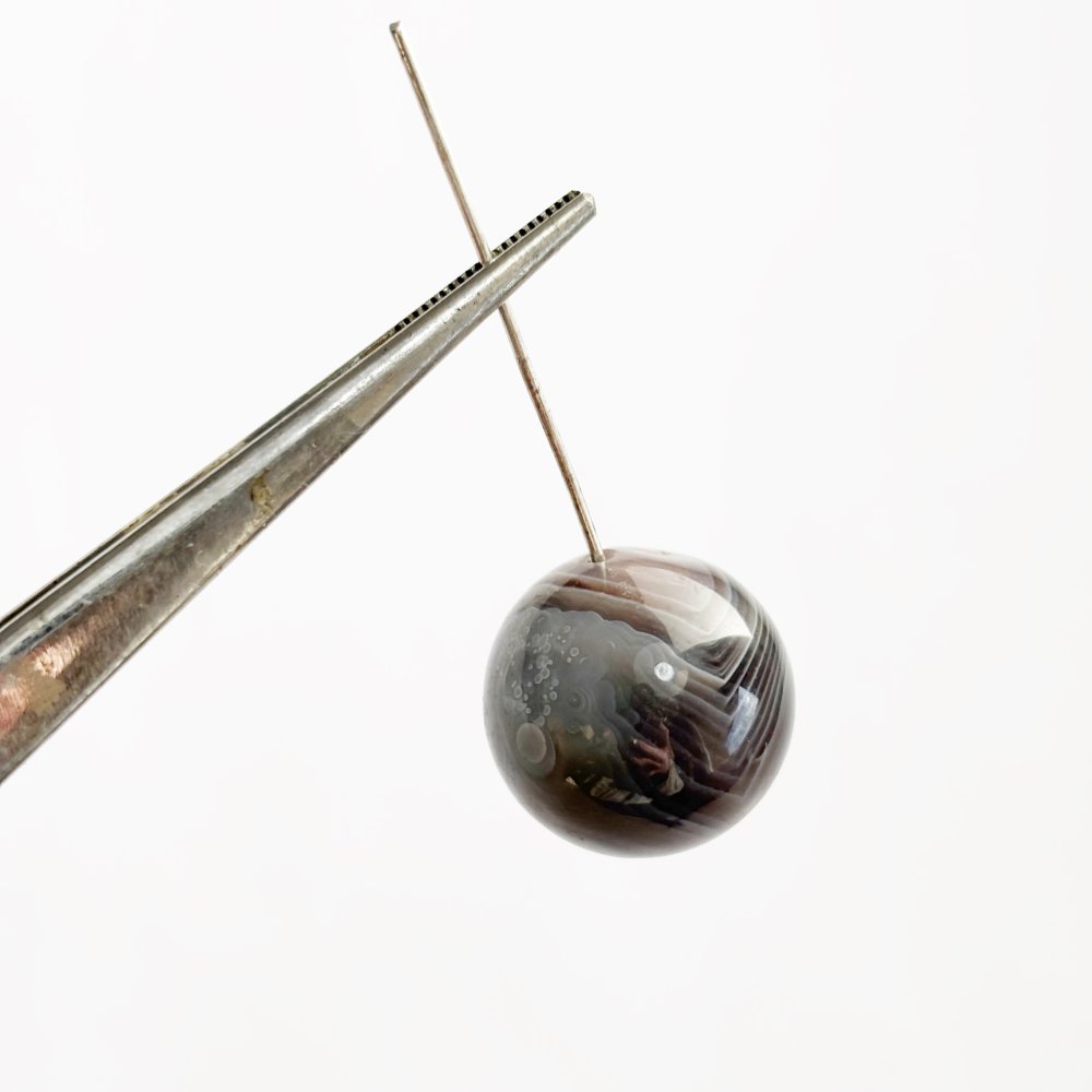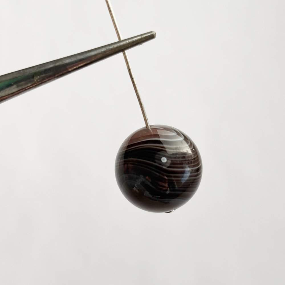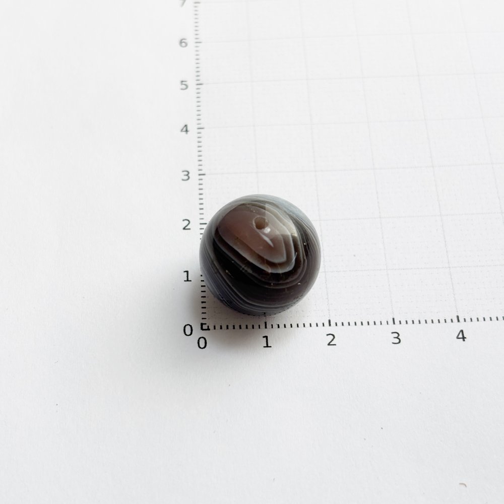 Perle naturelle en Agate du Botswana – 18 mm, trou 0,8 mm. Couleur brun foncé et gris nuancé de bandes claires. Vendue à l’unité avec photos contractuelles.