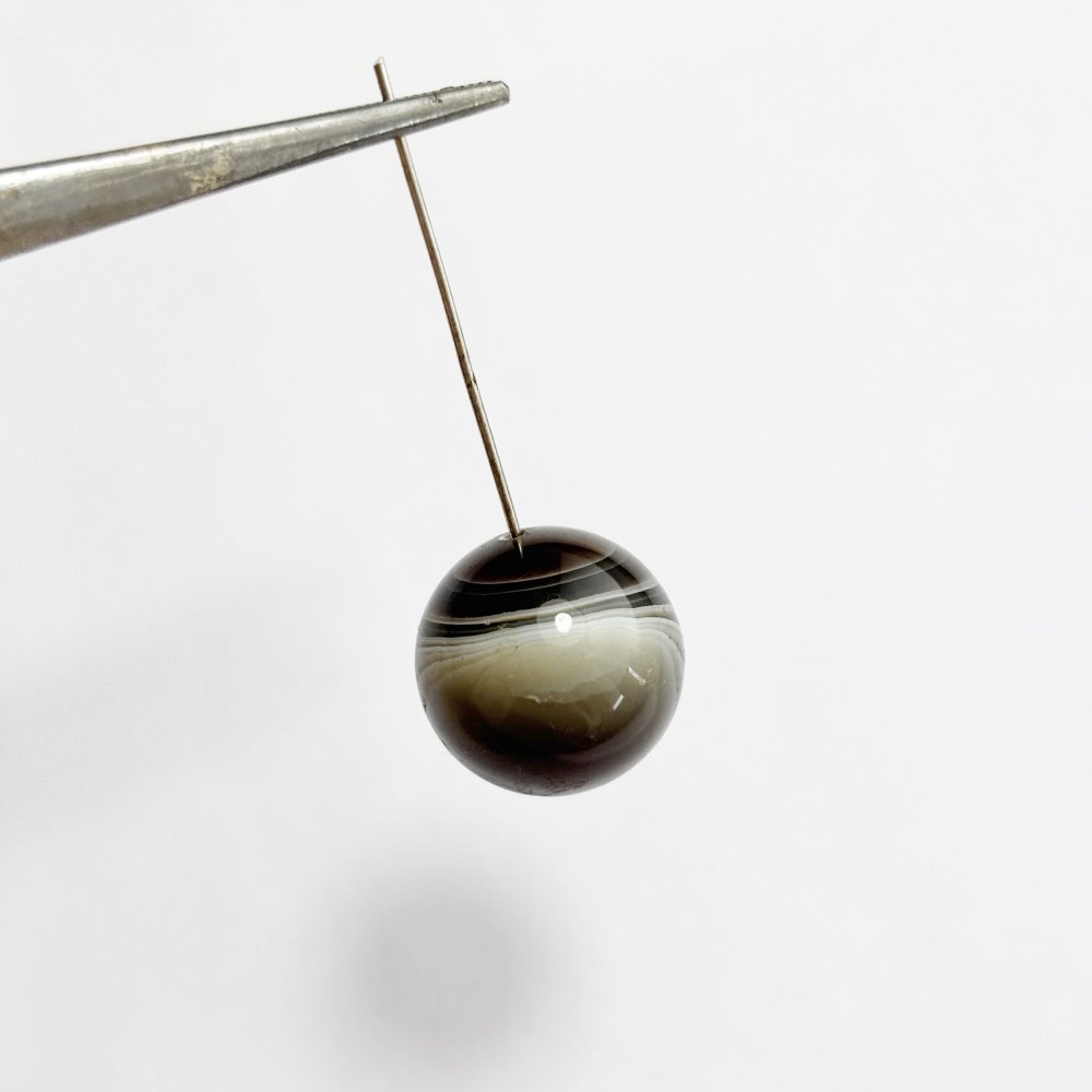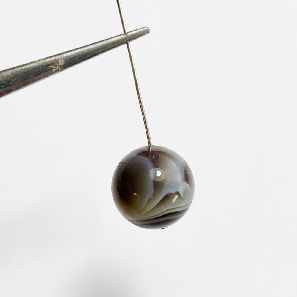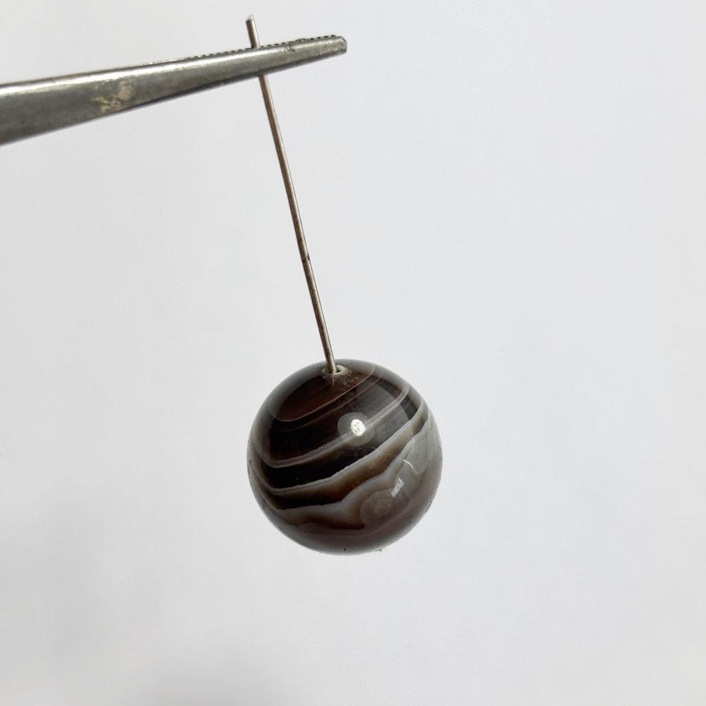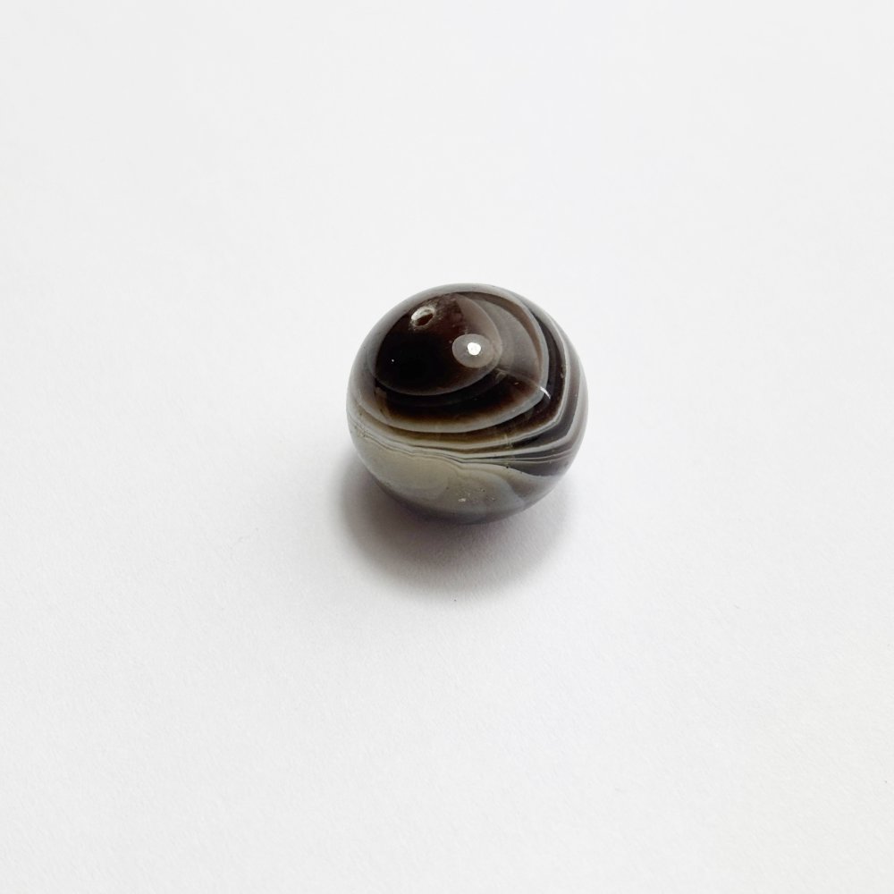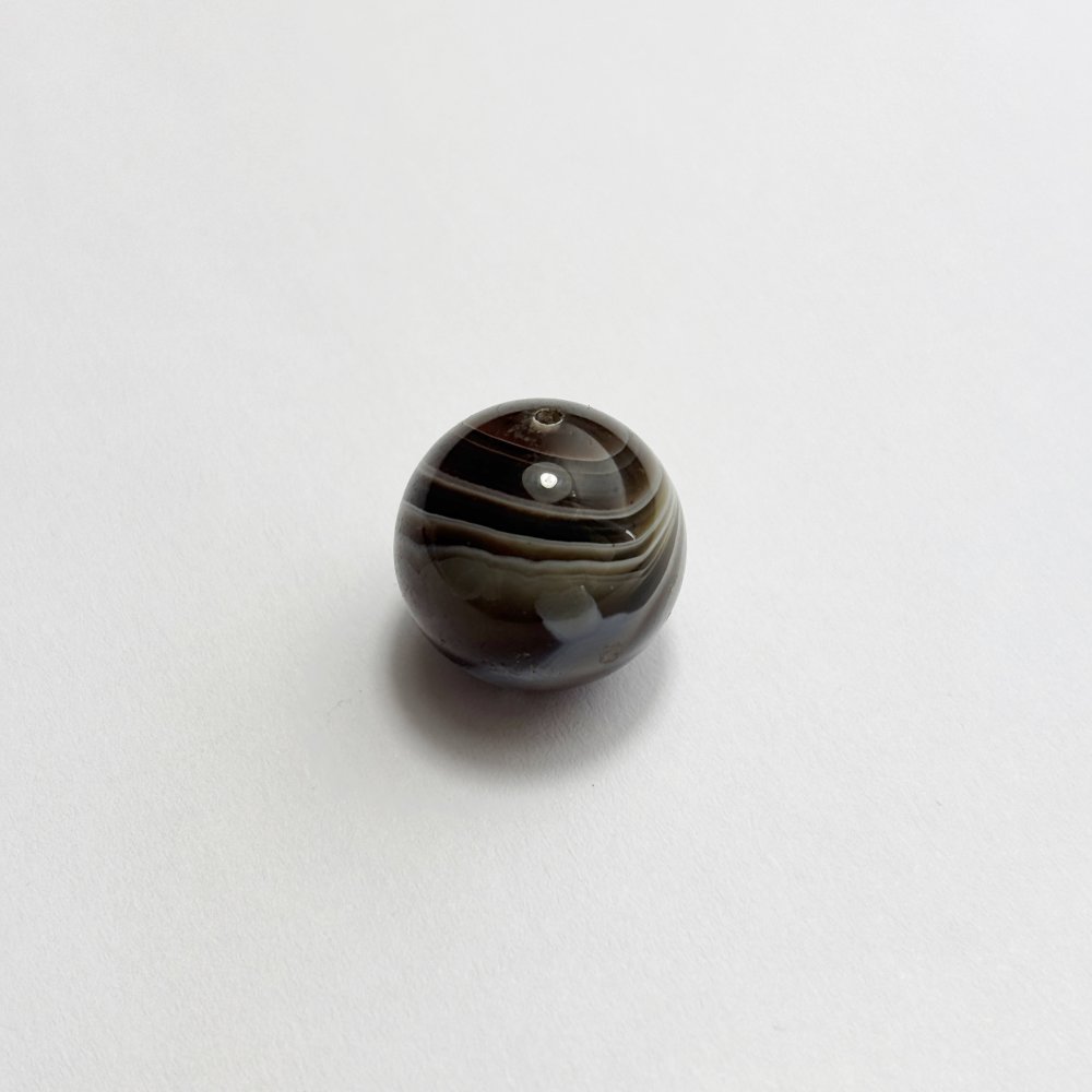 Perle naturelle en agate du Botswana de 18 mm, tons brun moka et ivoire, au poli brillant. Idéale pour créations raffinées ou bijoux de collection.