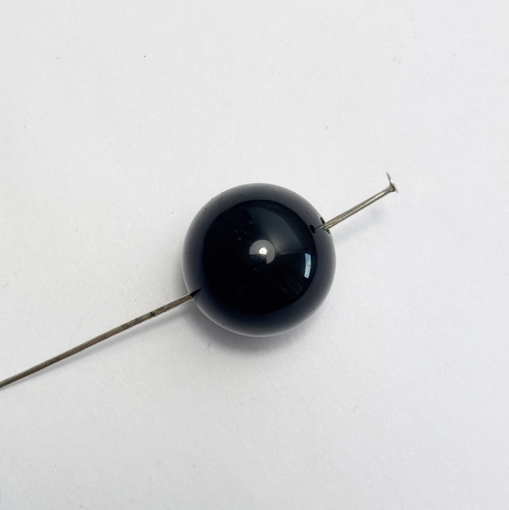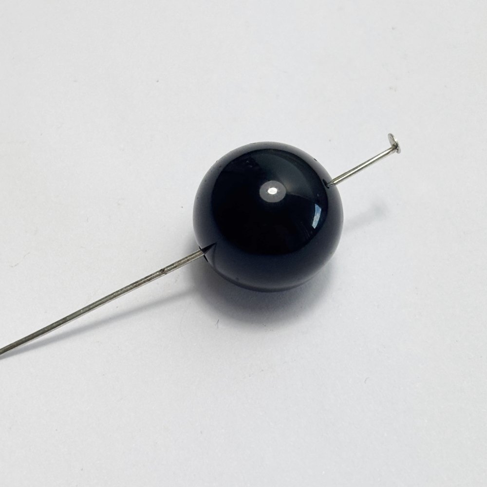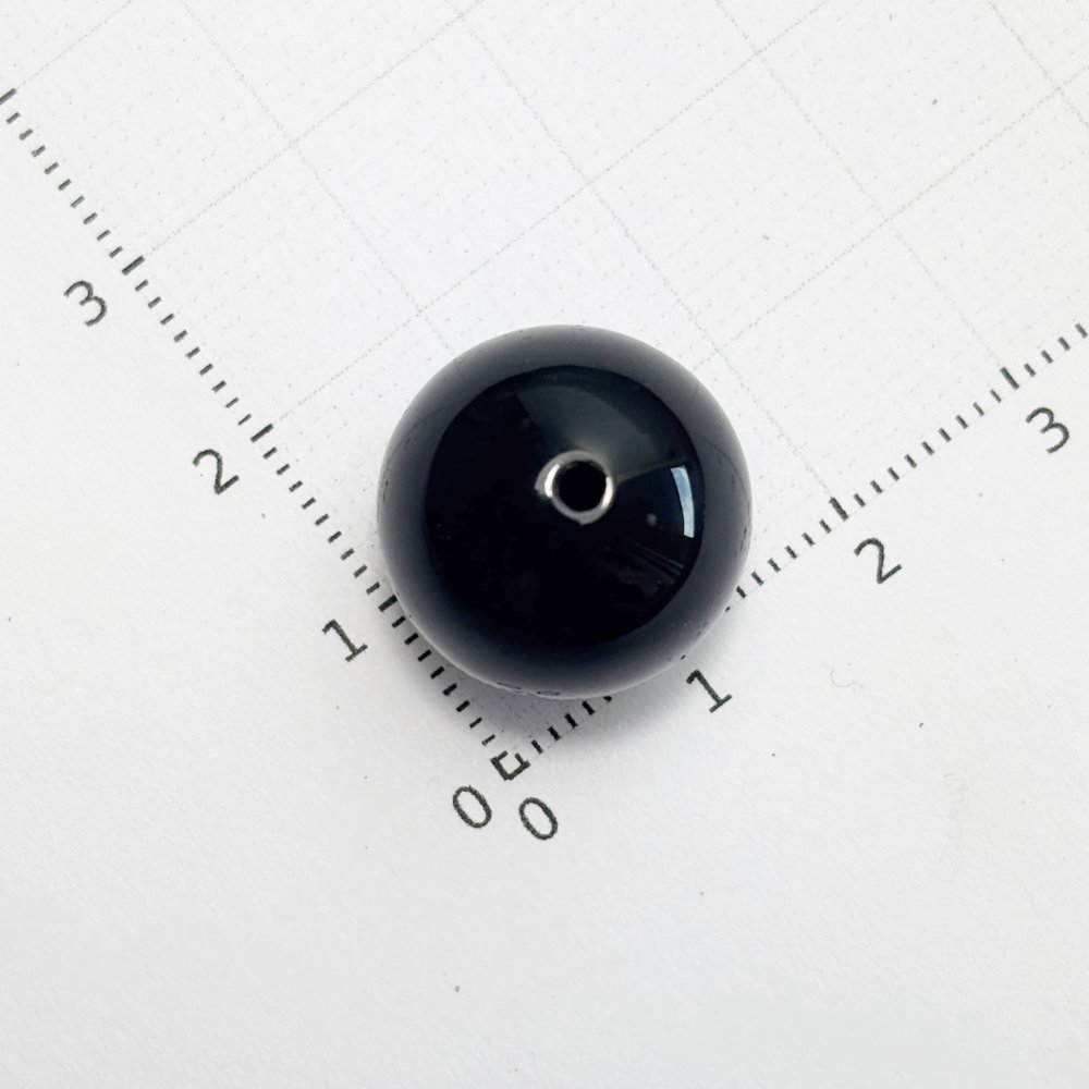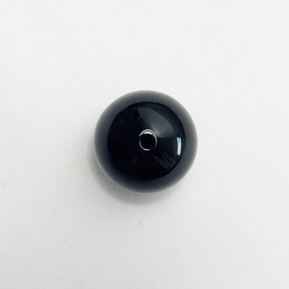 Perle en onyx noir naturel de 16 mm, à la brillance miroir et au trou transversal de 1,2 mm, vendue à l’unité pour créations de bijoux raffinées.
