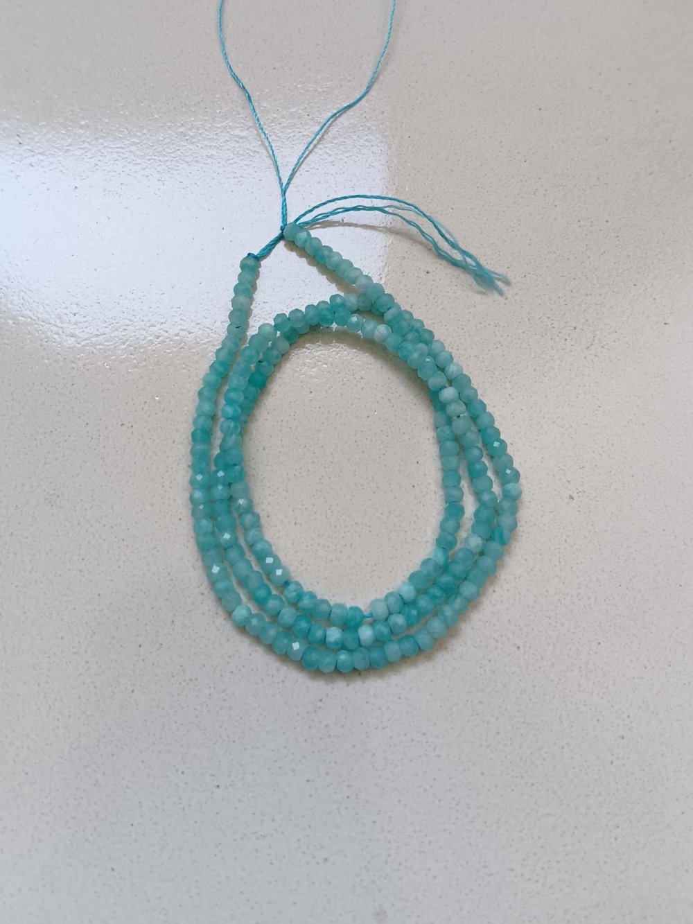 Perles rondelles facettées, en amazonite naturelle. Dimensions : 3x2mm, trou 0,8mm - En lot de 10 perles ou fil de 39cm