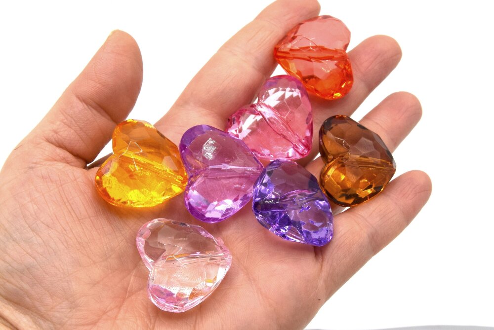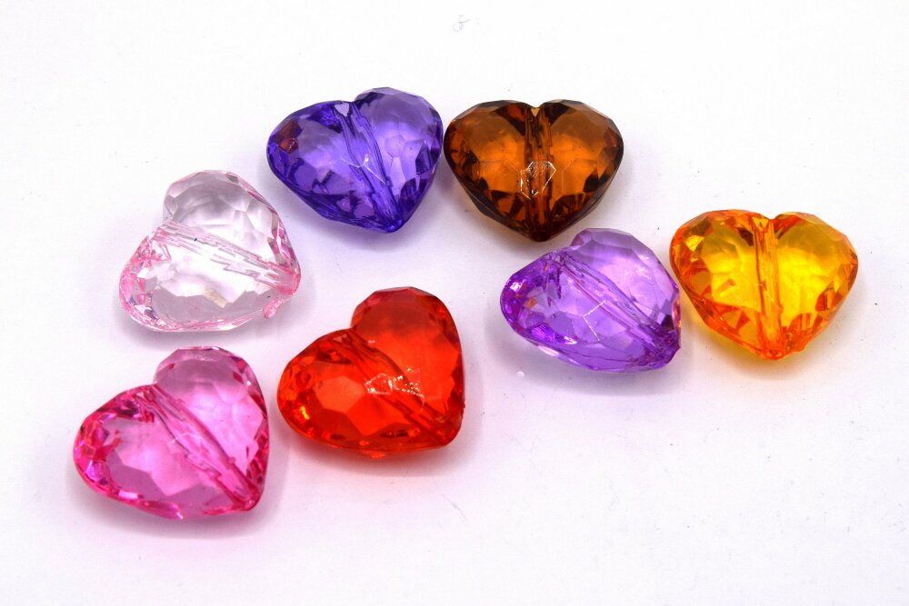 Grosses perles en acrylique transparentes, cœur, couleur mixte ~ 25 mm
