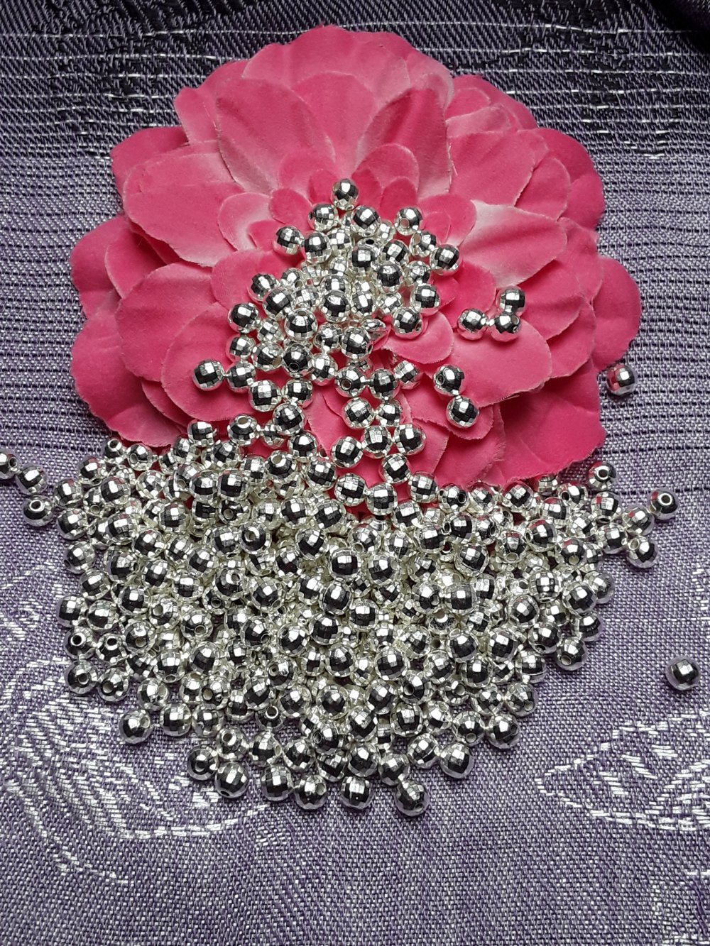 Lot de 20 perles 6mm ronde facette acrylique argenté blanc