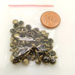 30 petits rivets double tête couleur bronze. Dia tête 5mm. Dia tige 1,7mm. Pour fixer fermoirs, charnières ou poignée en petite menuiserie ou en cartonnage.